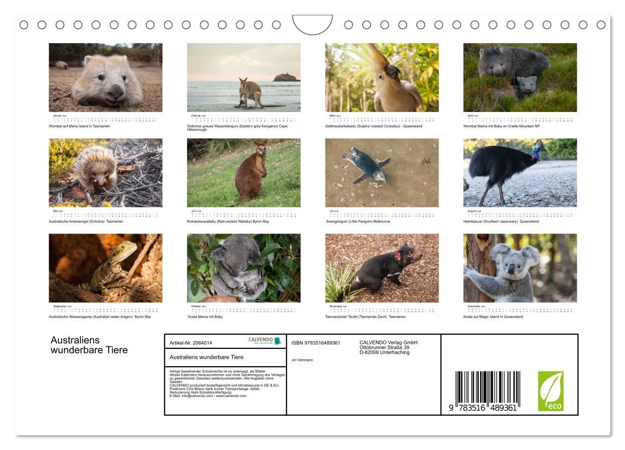 Australiens wunderbare Tiere (Wandkalender 2026 DIN A4 quer), CALVENDO Monatskalender