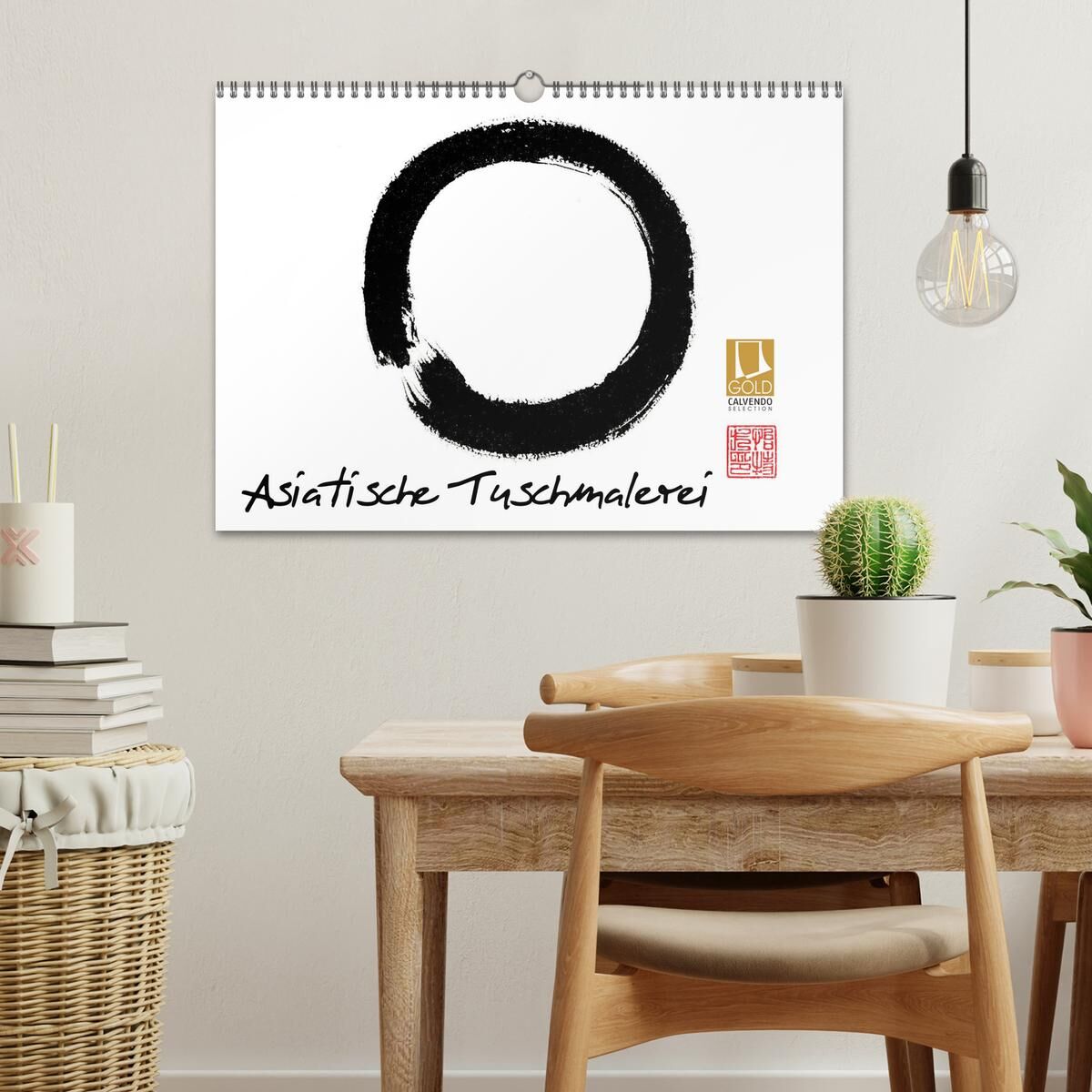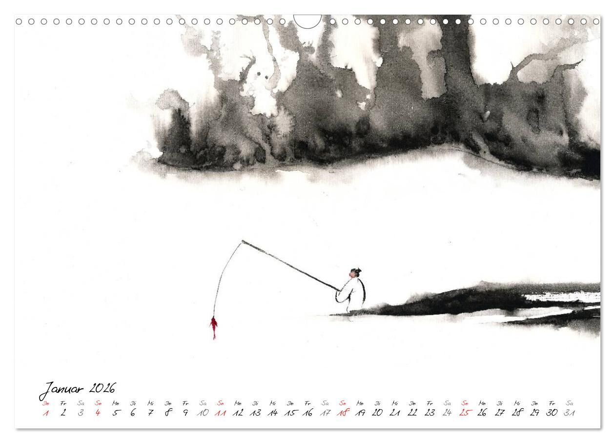 Asiatische Tuschmalerei ist eine von Zen-Buddhismus inspirierte Kunst der kraftvollen Pinselführung. Hier ist sie sparsam mit Aquarellfarbe kombiniert. Der Farbauftrag ist einmalig und nicht korrigierbar. Der Betrachter findet Ruhe und meditative Entspannung i...