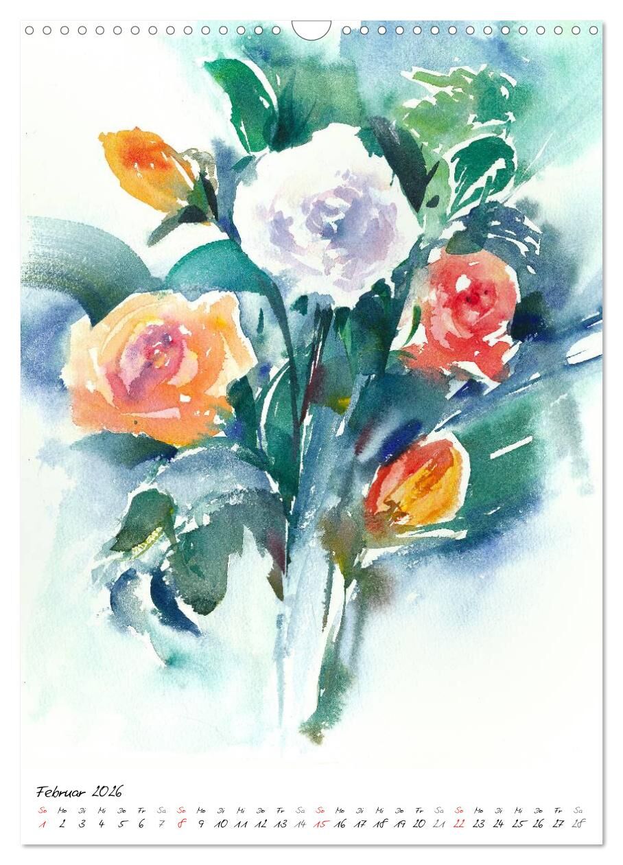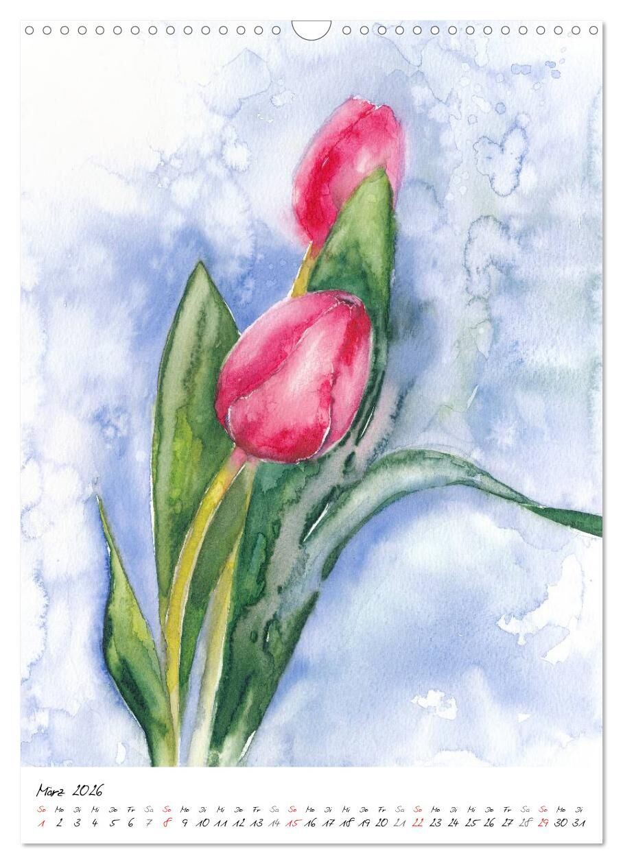 Blütenaquarelle (Wandkalender 2026 DIN A3 hoch), CALVENDO Monatskalender