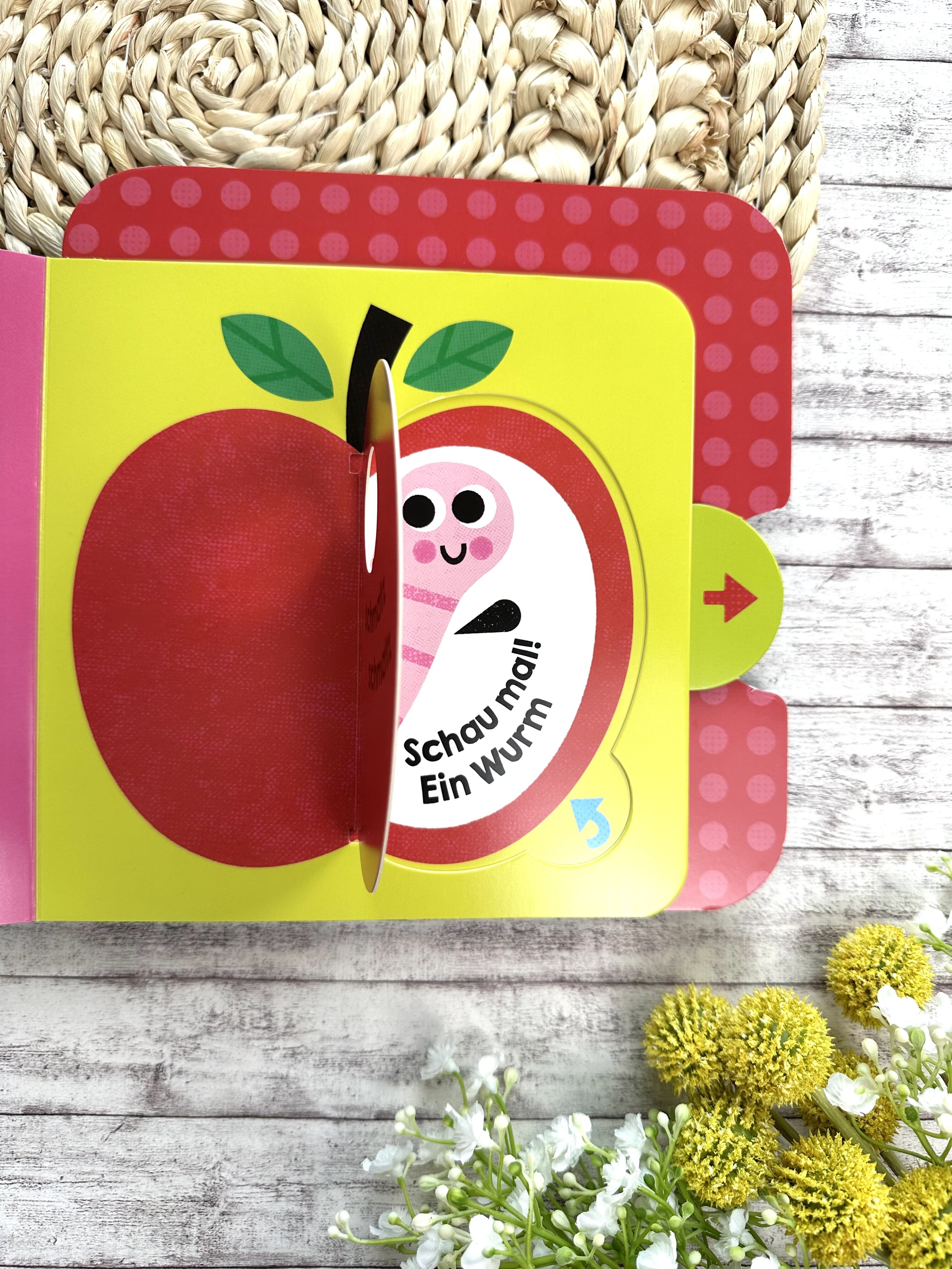 Wer versteckt sich da im Apfel? Ein kleiner Wurm! Und wer summt da so schön? Eine Biene! Rausziehen, aufklappen, drehen und staunen, was es alles in diesem Spielbuch zu entdecken gibt. Auf jeder Seite wartet ganz viel Spaß: Die großen bunten Bilder sind perfe...