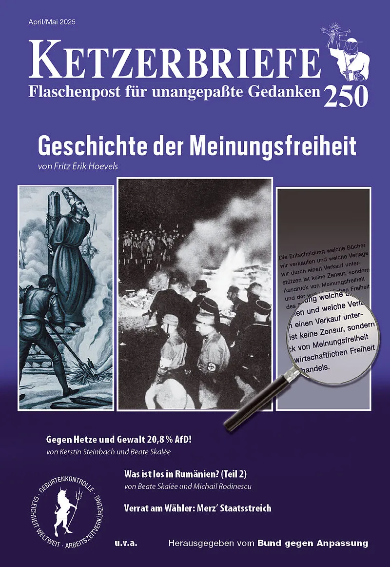Wie die Meinungsfreiheit in die Welt kam und wie sie aus ihr wieder verschwand von Fritz Erik Hoevels Was ist los in Rumänien? Teil 2 von Beate Skalée & Michail Rodinescu Gegen Hetze und Gewalt 20,8 % für die AfD! (Wenn´s nicht mehr waren...) von Kerstin S...