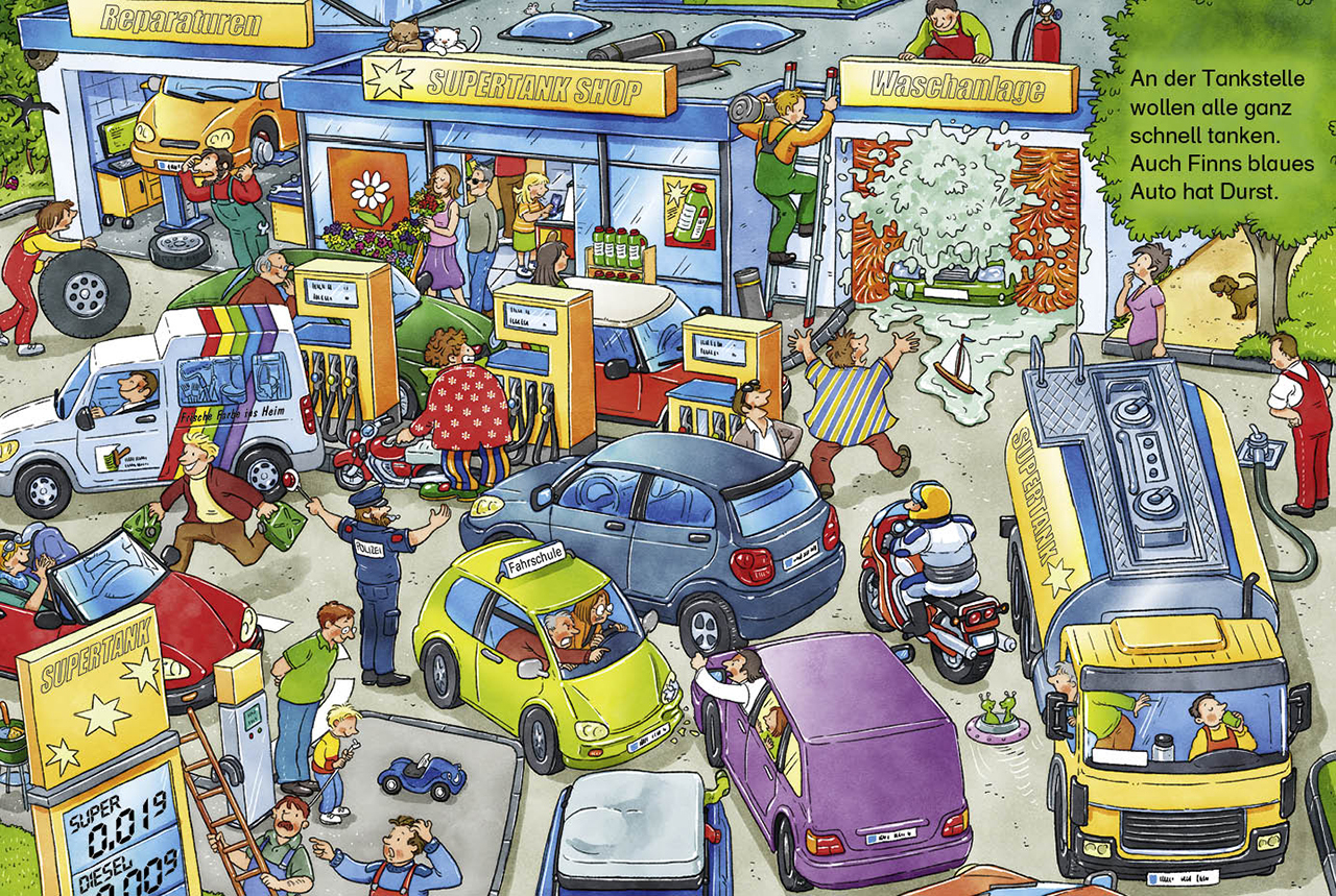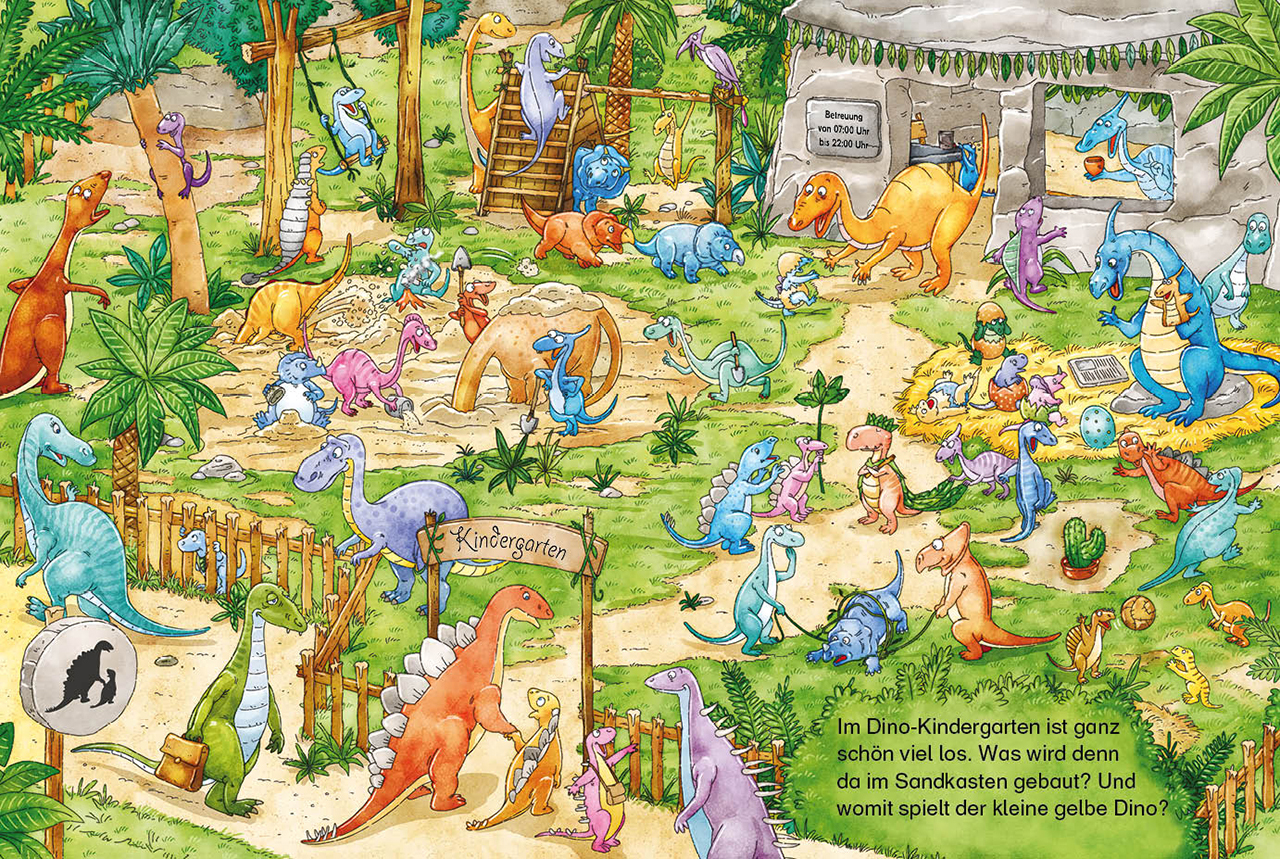 Auf geht's in die kleinen bunten Wimmelwelten ! Auf den Straßen und bei den Dinosauriern gibt es jede Menge zu entdecken. In all dem Trubel haben sich auf jeder Seite das blaue Auto und der kleine Dino versteckt. Wer findet sie zuerst? Ein Wendebuch für doppel...