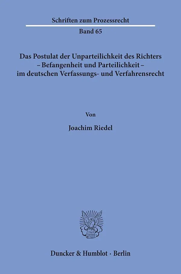 Das Postulat der Unparteilichkeit des Richters - Befangenheit und Parteilichkeit - im deutschen Verfassungs- und Verfahrensrecht.