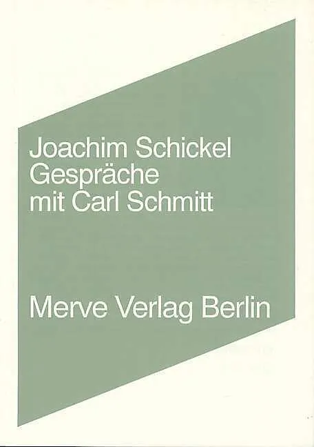 Die Themen der drei ausführlichen Gespräche reichen von Schmitts Buch Der Begriff des Politischen' (mit der bekannten Freund Feind Unterscheidung) bis zu seinem Buch über die Theorie des Partisanen'. - Schmitt erzählt außerdem von seinen Begegnungen mit dem Da...