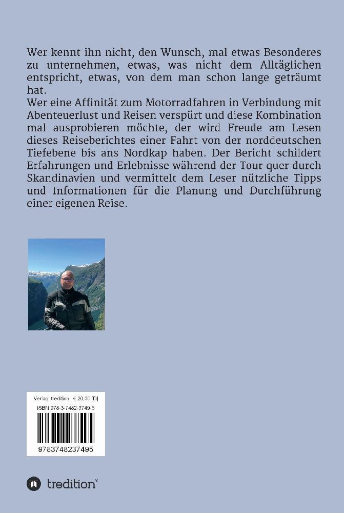 Dieser Reisebericht beschreibt auf interessante Art die Erfahrungen und Erlebnisse auf einer Motorradtour von der norddeutschen Tiefebene quer durch Skandinavien bis ans Nordkap Europas. Der Autor Joachim Schulze war drei Wochen lang auf seiner Yamaha XT 660 Z...