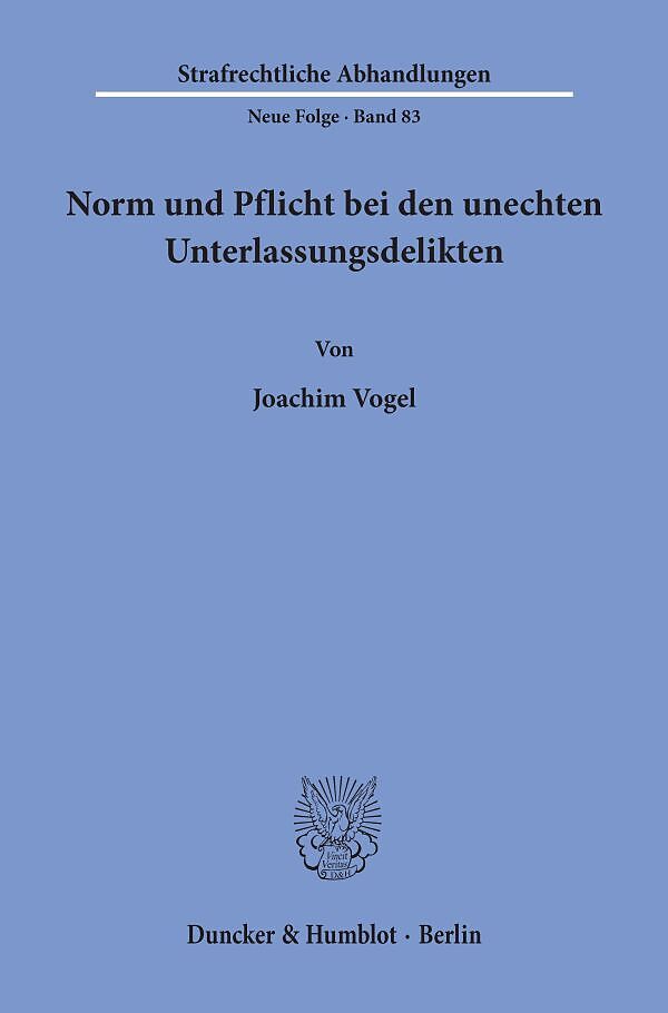 Norm und Pflicht bei den unechten Unterlassungsdelikten.