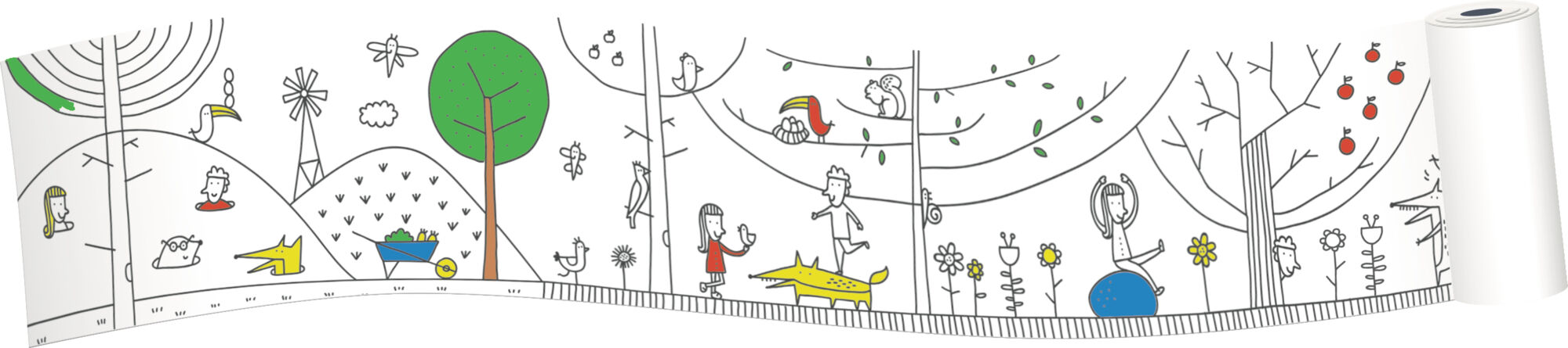 Die stabile und lustig gestaltete Schachtel enthält eine fünf Meter lange Malrolle mit einer fortlaufenden Szene ohne Wiederholungen. Vier Buntstifte in den Grundfarben sind gleich mit dabei. Unendlicher Malspaß für ein Kind allein oder eine ganze Geburtstags...