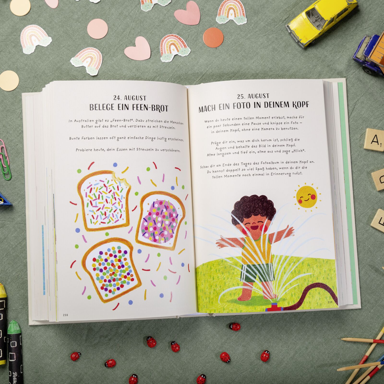 Eine Glücksidee für jeden Tag Kunterbuntes Jahrbuch für Kinder Dieser zauberhafte Begleiter führt Mädchen und Jungen ab 6 Jahren durch das ganze Jahr von den ersten Frühlingstagen bis in den tiefsten Winter. Ob ein Glücks-Outfit zusammenstellen, eigene Sticke...