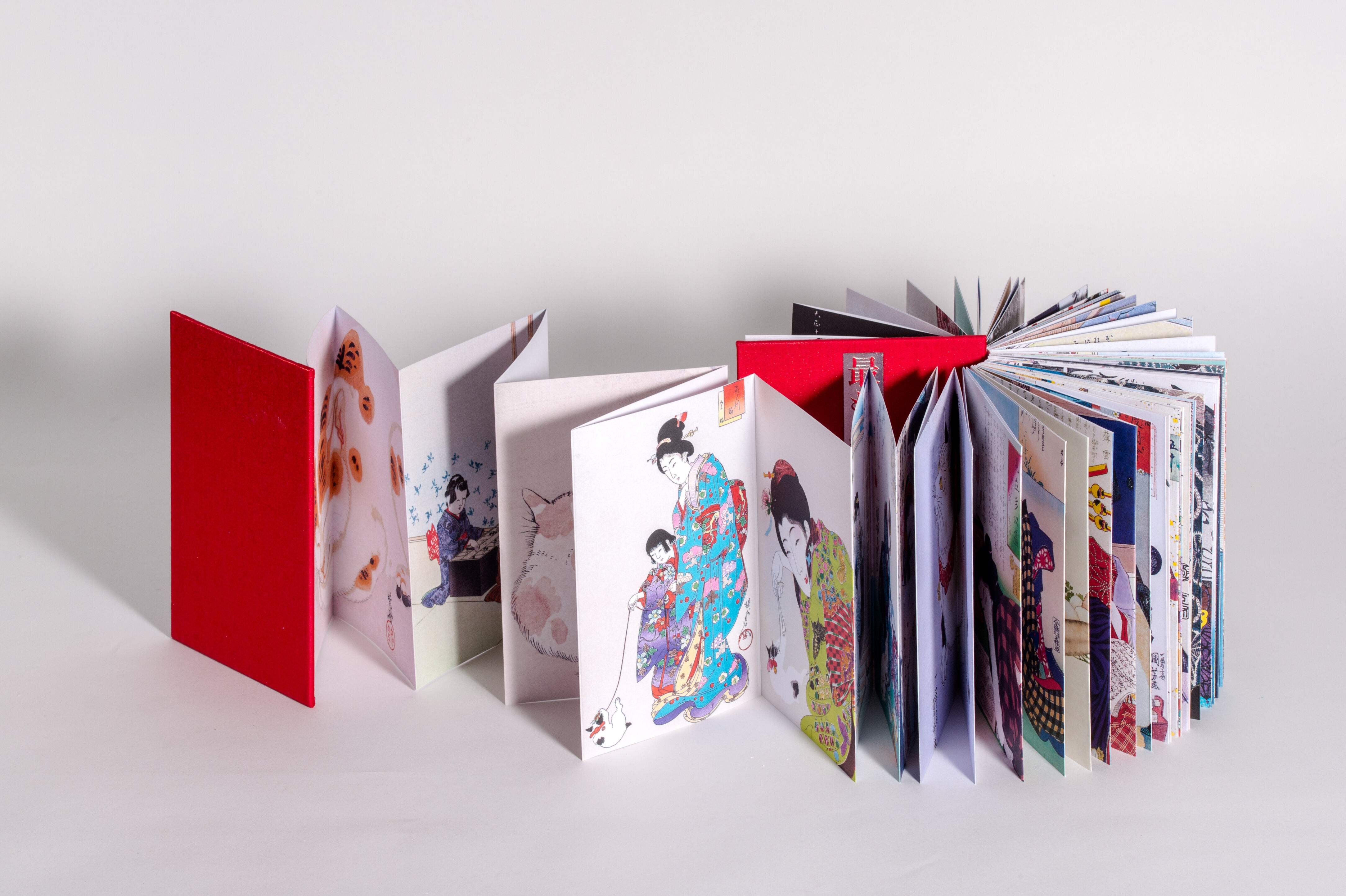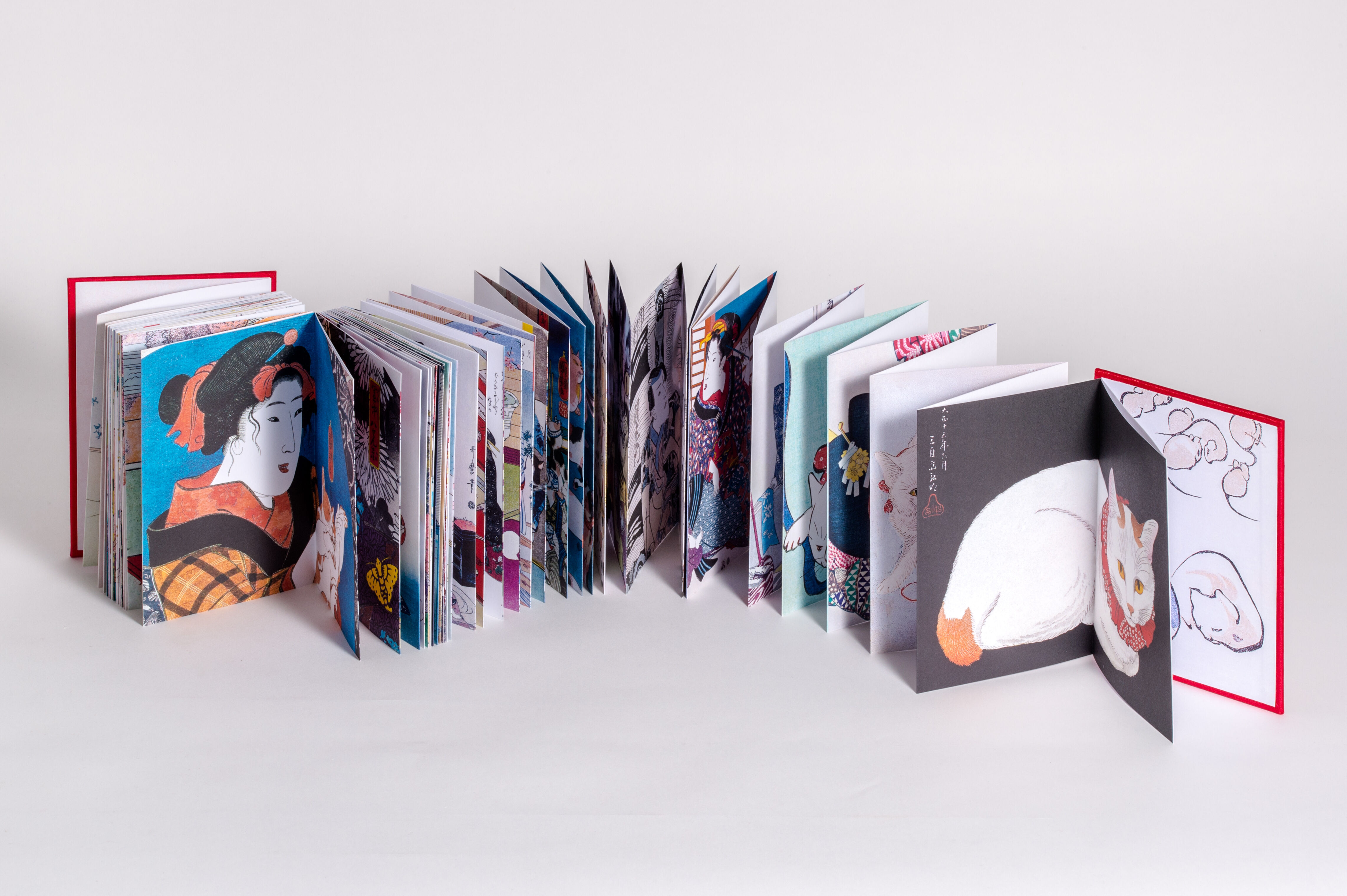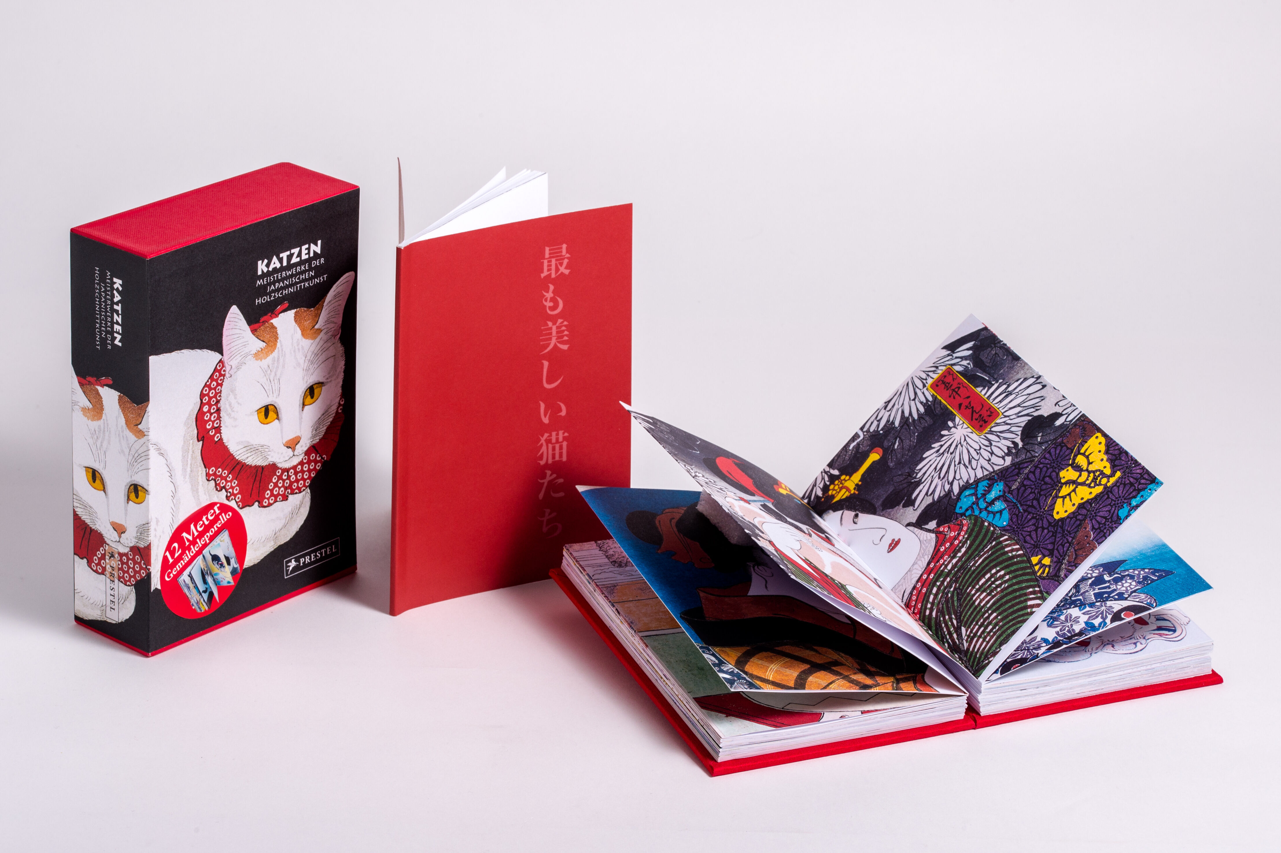 Katzen in Meisterwerken japanischer Kunst, präsentiert auf Riesen-Leporello im Schmuckschuber Dieses geschenkige Set enthält bezaubernde Werke mit Katzendarstellungen: Ein 12 Meter langer Gemälde-Leporello mit Leinenbindung und Booklet im Schmuckschuber begeis...