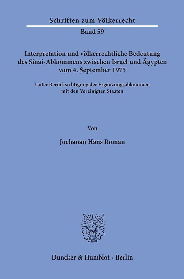 Interpretation und völkerrechtliche Bedeutung des Sinai-Abkommens zwischen Israel und Ägypten vom 4. September 1975 unter Berücksichtigung der Ergänzungsabkommen mit den Vereinigten Staaten.