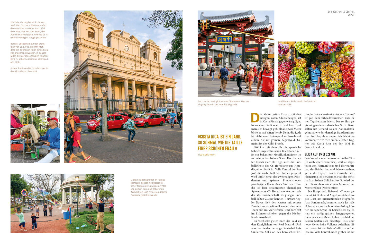 Wer an Costa Rica denkt, hat meist endlose Postkartenstrände, wogende Palmen und Karibikflair im Sinn. Doch das ist nur ein Gesicht des Inselstaates: So klein das Land, so bunt und vielfältig sind seine Natur und Kultur. Tiefgrüne Urwälder beherbergen eine der artenreichsten Zonen der Erde, aktive Vulkane lassen regelmäßig die Erde zittern und in den Städten und Dörfern wird zu traditionellen Festen auf den Straßen getanzt. Der DUMONT Bildatlas zeigt Ihnen, welche Orte Sie unbedingt besuchen müssen und wie Sie die »reiche Küste« am besten kennenlernen.