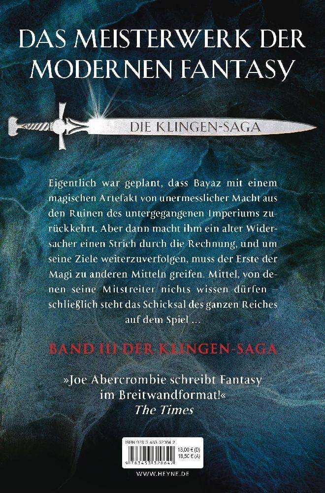 Erneut muss Logen Neunfinger in die Schlacht ziehen, denn überall im Land herrscht Krieg, der König liegt im Sterben, und das Reich versinkt im Chaos. Das weiß auch Großinquisitor Glokta, und mit List und Tücke versucht er den größtmöglichen Vorteil für sich h...