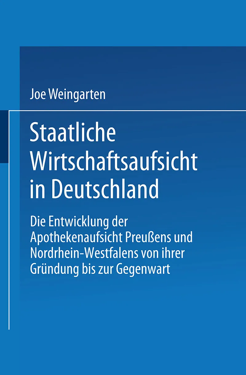 I: Grundlagen, Mittel und Ziele staatlicher Wirtschaftsaufsicht.- 1. Der Wirkungsrahmen staatlicher Wirtschaftsaufsicht.- 2. Maßstäbe und Ziele der Wirtschaftsaufsicht.- 3. Der Ablauf der Aufsicht.- 4. Defizite der Aufsichtsdiskussion.- II: Apothekenaufsicht in Preußen.- 5. Das deutsche Apothekenwesen und seine Beaufsichtigung im Mittelalter.- 6. Die Preußische Medizinal- und Apothekengesetzgebung.- 7. Die Apothekengesetzgebung des Deutschen Reiches.- 8. Die Organisation des Preußischen Medizinalwesens bezüglich der Apothekenaufsicht.- 9. Ausgewählte Aufsichtsgebiete.- 10. Mittel der Apothekenaufsicht.- III: Apothekenaufsicht in Nordrhein-Westfalen.- 11. Die bundesgesetzliche Regelung des Apotheken- und Arzneimittelwesens.- 12. Die Aufsichtsgebiete nach dem Bundesrecht.- 13. Apothekenaufsicht in Nordrhein-Westfalen.- IV: Apothekenaufsicht als staatliche Wirtschaftsaufsicht Zusammenfassung und Bewertung der Ergebnisse der Untersuchung.- 14. Entwicklungslinien der Apothekenüberwachung.- 15. Die staatliche Apothekenaufsicht in Preußen und Nordrhein-Westfalen Eine Bewertung der Untersuchungsergebnisse.- A) Aufsichtstheorie (Teil I).- B) Apothekenaufsicht (Teile II, III und IV).- b1) Monographien und Aufsätze.- b2) Zeitungen und Zeitschriften.- b3) Gesetzes- und Verordnungssammlungen.