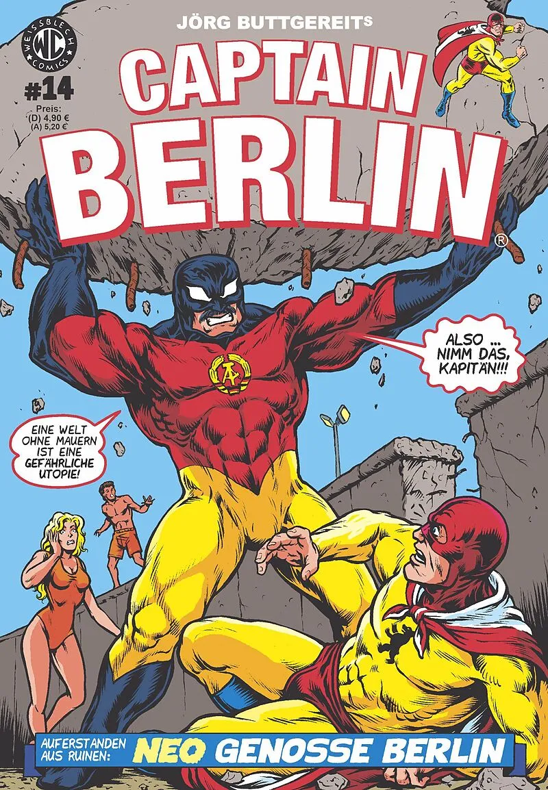 CAPTAIN BERLIN 14 setzt den Mauerkracher aus CAPTAIN BERLIN 13 fort: Berlin 1989 - die Mauer ist gefallen, aber das passt nicht allen. Mit mächtigem Getöse kehrt Genosse Berlin zurück! Doch der rote Held der DDR hat sich nicht nur ein neues Kostüm zugelegt. Vo...