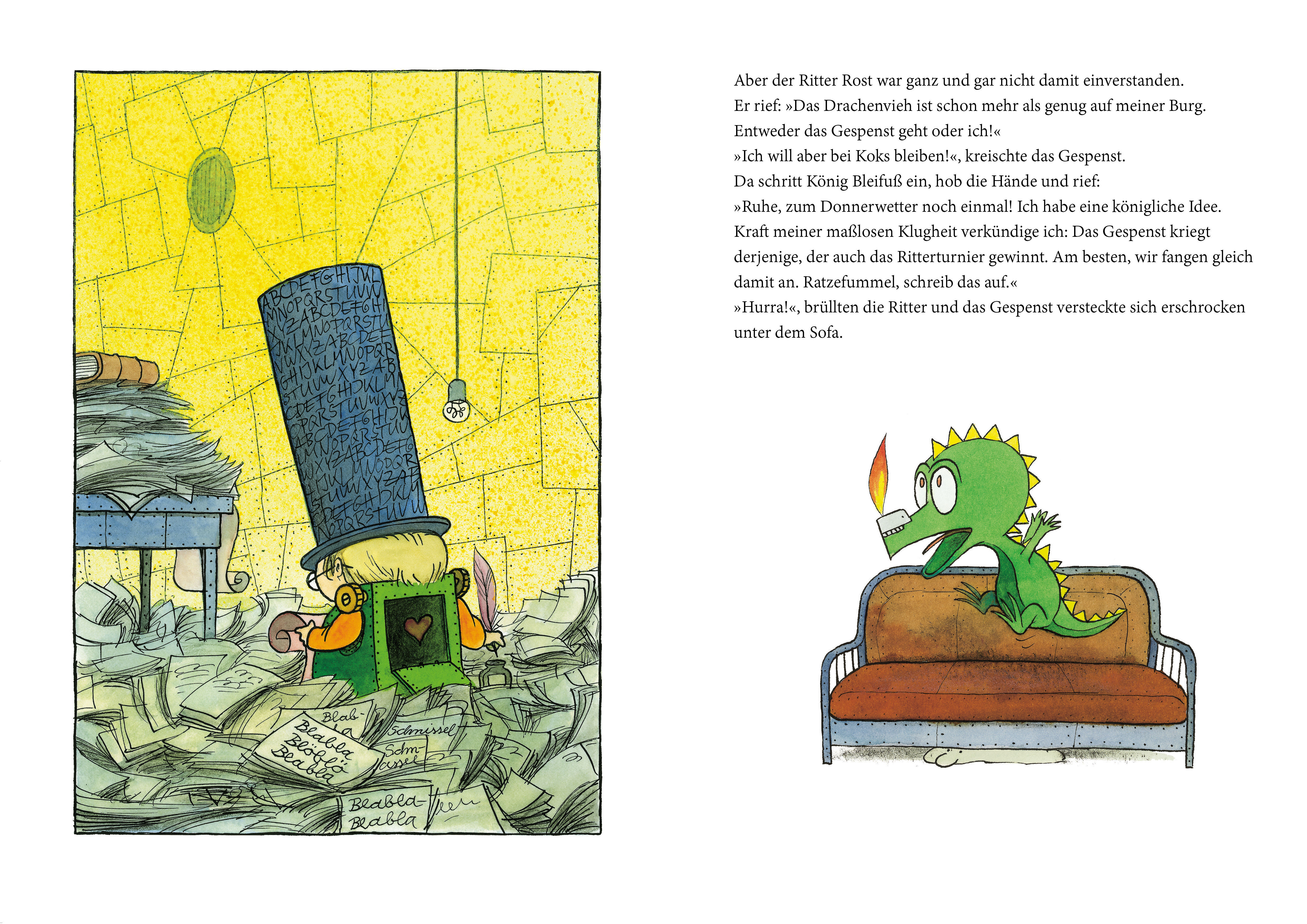 Ein obdachloses Gespenst erscheint auf der Eisernen Burg des Ritter Rost und veranstaltet mit Koks dem Hausdrachen eine Gespenstershow. Währenddessen muss Ritter Rost zu einem großen Ritterturnier einladen, bei dem auch Burgfräulein Bö, König Bleifuß der Verb...