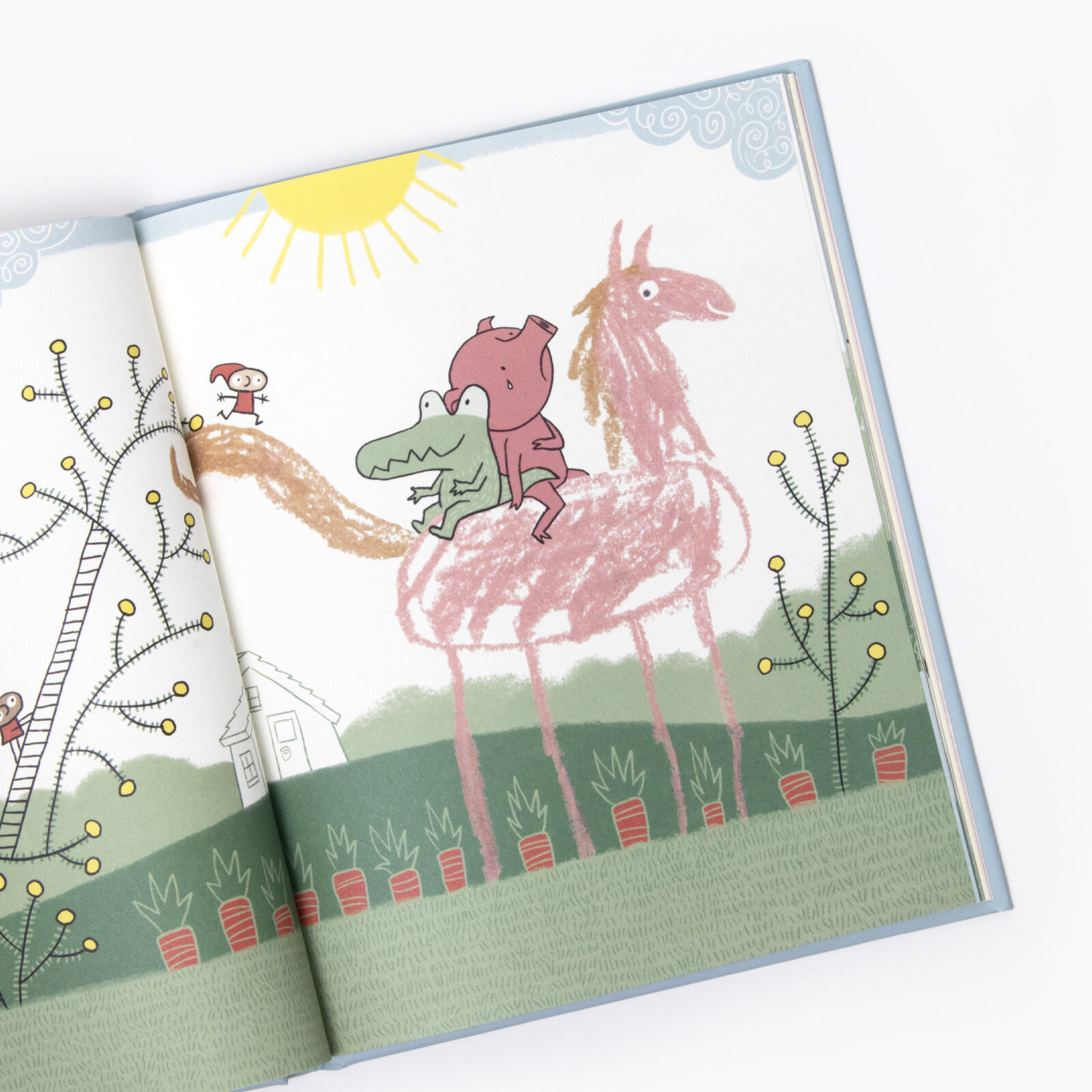 Ein Schwein ist ganz allein. Das ist total verkehrt, drum malt es sich ein Pferd. Gemeinsam mit seinen neuen Gefährten begegnet das Schwein noch vielen weiteren Freunden, einem Krokodil, Wichteln, einem Riesen und einigen anderen mehr. Doch noch immer fühlt s...