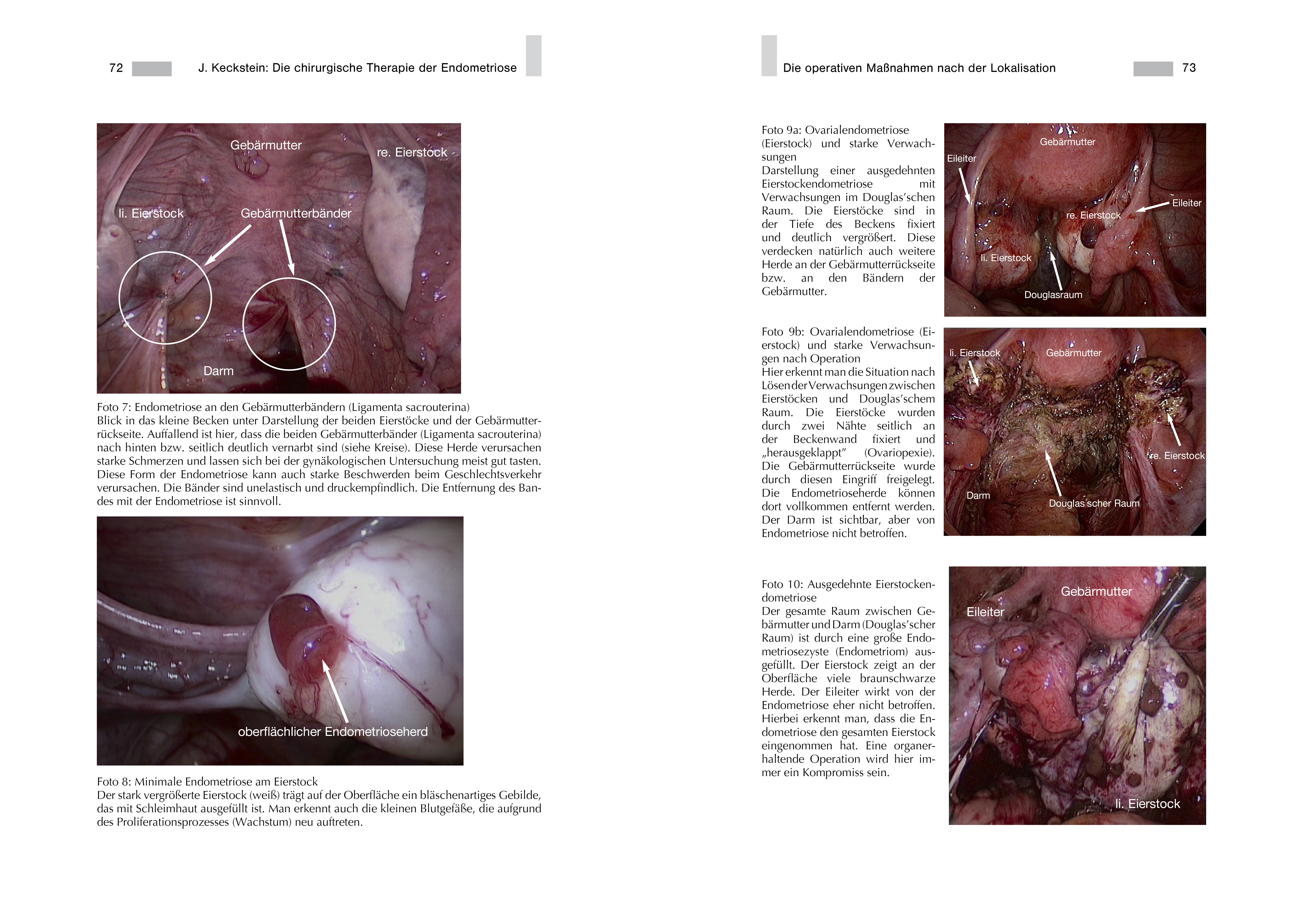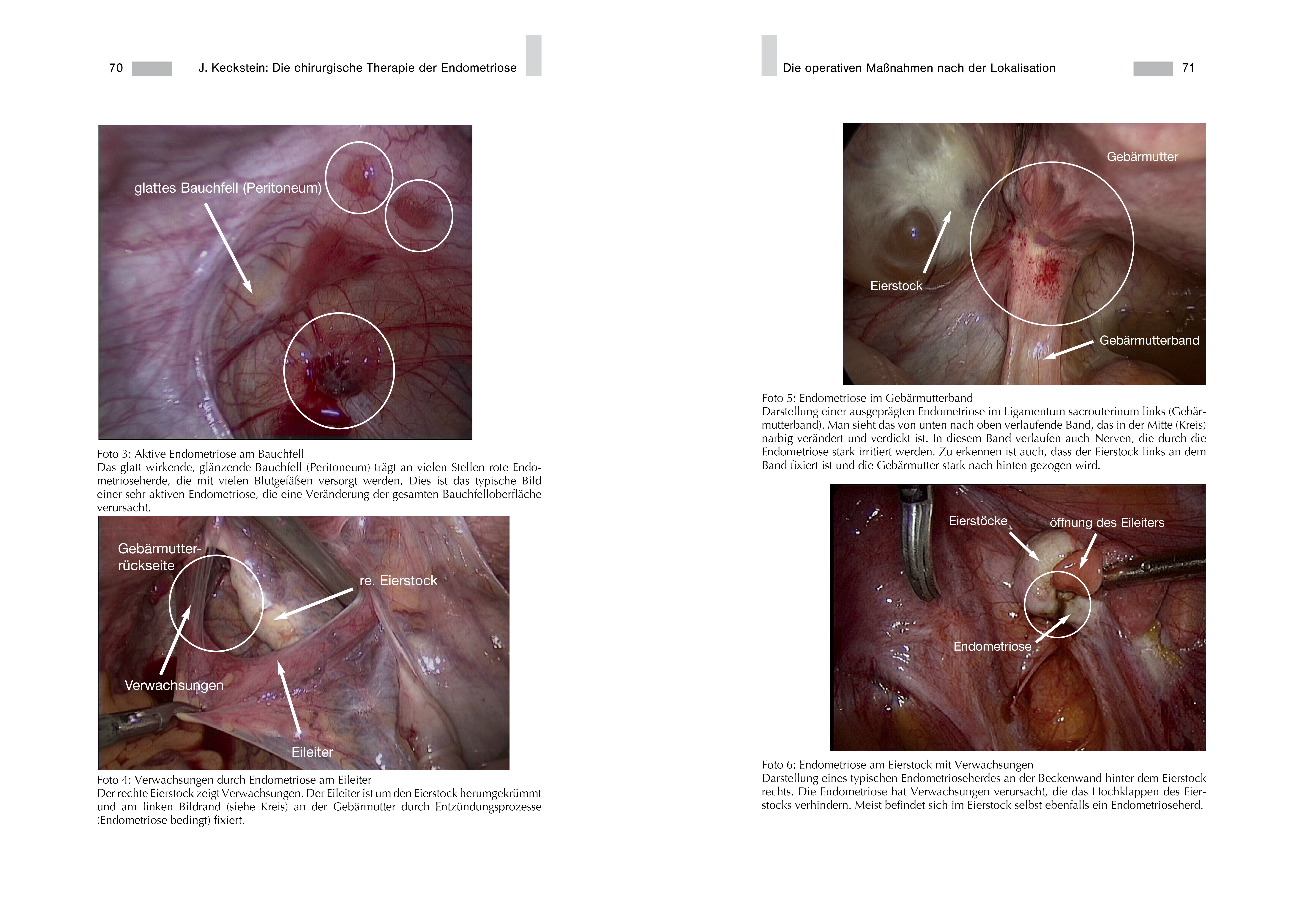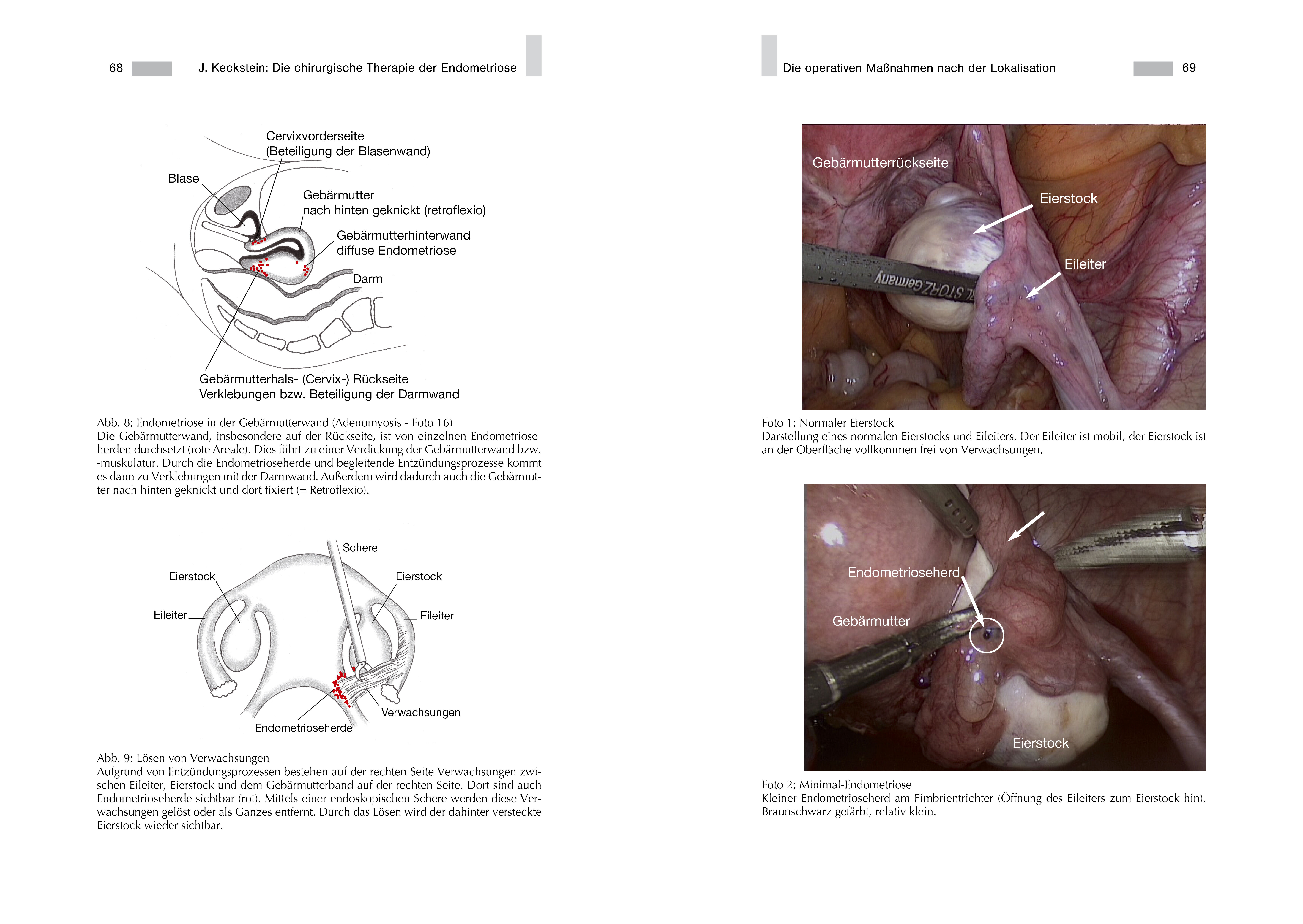 Vorwort • Endometriose ist eine gutartige Frauenkrankheit, die in jedem Alter nach der ersten Regelblutung auftreten kann! • Die biochemischen und psychologischen Abläufe und Zusammenhänge der Erkrankung sind noch nicht wissenschaftlich ausreichend erforscht. • Die Ursachen, die zur Endometriose führen, sind noch unbekannt, und wie sie entsteht, ist nur teilweise geklärt. • Und ein nicht unbedeutender Teil aller Endometriosen ruft überhaupt keine Beschwerden hervor. • Umfangreich untersucht wurde, wie eine Endometriose fortschreitet und Krankheitssymptome hervorruft. • Die Erkrankung, die das Zellgewebe der Organe der Bauchhöhle, aber auch anderer Organe befallen kann, verursacht nicht vorhersehbare Beschwerden unterschiedlichster Qualität. • Endometriose spielt sich dabei nicht nur im biologischen, sondern auch im sozialen Leben von Frauen ab. Denn eine Frau, die längere Zeit an chronischen Schmerzen leidet, verändert sich. Im Umgang mit Endometriose ist eine ganzheitliche Sicht notwendig, die die Lebensqualität und nicht nur das Funktionieren« berücksichtigt. Durch mehr Wissen und Kompetenz können Frauen lernen, mit einer chronischen Endometriose gut zu leben und sich eine optimale Behandlung zu sichern. Die Endometriose ist eine komplexe Erscheinung, die einerseits für die betroffene Frau ohne jegliche Bedeutung sein kann, andererseits aber eine extrem belastende Erkrankung mit weitreichenden Folgen für das körperliche und seelische Befinden darstellen kann. Obwohl eine der häufigsten gutartigen gynäkologischen Erkrankungen, ist das Wissen über die Endometriose noch unzureichend. Bei der Lektüre dieses Buches werden Sie als Betroffene feststellen, dass es für viele Faktoren, Einflüsse und Wirkmechanismen, die bei der Entstehung, dem Fortschreiten und dem Verlauf der Endometriose eine Rolle spielen, noch keine abschließend befriedigenden medizinischen Erklärungen gibt. Medizin kann aber aufgrund des heutigen Wissensstandes aus unterschiedlichen erprobten Therapiekonzepten, die für den individuellen Fall bestmögliche Behandlungsform anbieten. Denn jede Endometriose ist anders. Unterschiedliche Ausprägungen und Verlaufsformen der Endometriose, aber auch individuelle Bedürfnisse der Betroffenen je nach Lebensgeschichte und Lebenssituation machen diese individuelle Behandlungsstrategie nötig. Dieses Buch gibt Ihnen einen Überblick über die derzeitig wichtigsten Erkenntnisse aus der Endometrioseforschung und die daraus entwickelten Therapiekonzepte, die ausführlich beschrieben werden. Die unterschiedlichen Verfahren stehen dabei nicht konkurrierend, sondern ergänzend zueinander, damit sich Betroffene über das ganze Spektrum möglicher Hilfen informieren können. Denn eine informierte Patientin kann entscheidend dazu beitragen, gemeinsam mit den behandelnden Experten und Expertinnen sich die für ihre Endometriose optimale Therapieform zu sichern. Jörg Keckstein Auszug aus: Warum die Diagnose oft schwierig ist (H.-W. Schweppe) Symptome, Lokalisation und Häufigkeit Die Endometriose verursacht typischerweise unterschiedlich starke, langsam zunehmende und zeitweise unerträgliche Menstruations-beschwerden, chronische, zyklische oder permanente Schmerzen vor allem im Beckenbereich, aber auch im gesamten Bauchraum. Häufig ist sie die Ursache für ungewollte Kinderlosigkeit. Ferner klagen Endometriosepatientinnen häufig über uncharakteristische Störungen des Allgemeinbefindens. Eine Endometriose kann wiederholte stationäre Behandlungen, operative Eingriffe und langfristige medikamentöse Therapien erforderlich machen. Je nachdem, wo sich die Endometriose angesiedelt hat und welche Organe mit befallen sind, variieren die Beschwerden. Und endometriosebedingte Verwachsungen und Narben führen zu zyklusunabhängigen Beschwerden. Oft steht die Schwere der Erkrankung nicht im Zusammenhang mit der Intensität der Beschwerden. Und ein nicht unbedeutender Teil aller Endometriosen ruft überhaupt keine Beschwerden hervor. Präzise Angaben über die tatsächliche Häufigkeit der Endometriose können deshalb nicht gemacht werden, sondern nur für Häufigkeitsbereiche von genau bezeichneten Untergruppen. Das typische Alter zum Zeitpunkt der Erstdiagnose liegt zurzeit zwischen dem 20. und 40. Lebensjahr. Ursache für die steigende Erkrankungsrate »jüngerer Frauen« ist wahrscheinlich die verbesserte Diagnostik, da die diagnostische Laparoskopie (Bauchspiegelung) häufiger eingesetzt wird, um ungewollte Kinderlosigkeit, unklare Unterbauchbeschwerden und sekundäre Menstruationsschmerzen abzuklären. Bis zu zehn Prozent der Endometriosen wurden bei Frauen vor dem zwanzigsten Lebensjahr nachgewiesen, und man schätzt, dass bis zu zwei Prozent der Frauen auch nach den Wechseljahren noch an Endometriose oder ihren Folgen leiden. In 60 % der Fälle findet man die Absiedelungen im Douglas'schen Raum (Bereich zwischen Gebärmutterhinterwand und Dickdarm) und/oder an den Haltebändern der Gebärmutter, insbesondere an denen, die um den Dickdarm herum in die Kreuzbeinhöhle ziehen. Die Eierstöcke sind bei etwa der Hälfte aller Patientinnen befallen. Andere Organe einschließlich der Blase (15 %) und der Eileiter (bis zu zehn Prozent) sind häufig mit befallen. Eine Endometriose im Bereich der Bauchhöhle oder an sonstigen Körperstellen außerhalb des Bauchraumes, ohne dass das kleine Becken gleichzeitig mit befallen ist, wird selten beobachtet und wird mit unter acht Prozent der Fälle angegeben. Sind die inneren Genitalorgane von Endometriose befallen, so sind in bis zu 20 % der Fälle auch der Darm, Enddarm, Blinddarm oder Harnleiter mit betroffen. Eine Endometriose außerhalb des Bauchraumes ist selten, aber es gibt gut dokumentierte Fälle von Endometriose in den Lungen, des Lungenfells oder des Rippenfells sowie Endometrioseabsiedelungen im Bereich der Arme und Beine, des Rückenmarkkanals oder in Operationswunden (Bauchschnitt, Dammschnitt). Neben diesen B