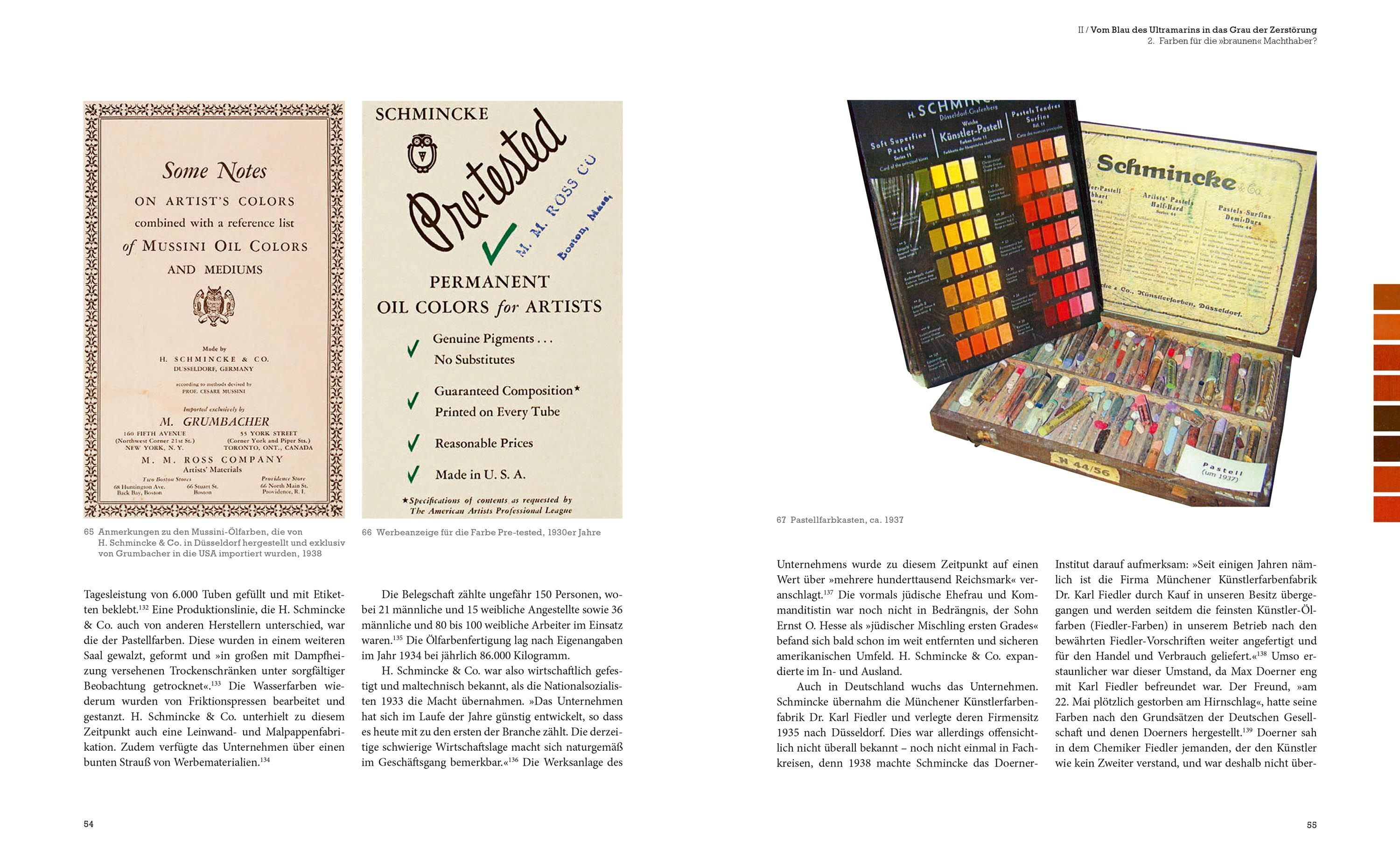 Gegründet in 1881, ist die Firma H. Schmincke & Co., eine der weltweit führenden Hersteller von Künstlerfarben und eine international bekannte Marke. Mit Schmincke-Farben malten schon große Künstler wie Otto Dix, Emil Nolde oder Oskar Kokoschka, und das ist aus bis heute so geblieben. Bis zum heutigen Tag befindet sich das Unternehmen in Familienbesitz, und so ist dieses Buch auch ein weiterer Beitrag der Forschung zur Geschichte von Familienunternehmen. Das Buch spannt den Bogen von den bescheidenen Anfängen Ende des 19. Jahrhunderts über die "Goldenen Zwanziger", die NS-Zeit "zwischen Verfolgung und Kooperation", den schwierigen Neuanfang nach 45, die Expansion in den Jahrzehnten nach dem Krieg sowie die durch Strukturwandel und auch familiär bedingten Krisen in den 90ern. Die Firmengeschichte ist bis zum heutigen Tag durcherzählt und gibt auch Ausblicke auf die anstehenden Herausforderungen. Neuland betreten die Autor*innen bei der Erforschung der Geschichte und der Mechanismen dieses Teils des Kunstmarktes. Aus dem Schlusswort: "Die sehr kleine Branche der Künstlerfarben-Produzenten ist von Unternehmenshistorikern bisher faktisch ausgeblendet worden. Weder liegen ältere Arbeiten zu Schmincke, noch zu den Wettbewerbern vor. Allerdings lassen sich mit Hilfe jüngerer Studien, die das Innenleben von Unternehmerfamilien und ihre Konflikte im 19. und 20. Jahrhundert thematisieren, zumindest die Besonderheiten der Eigentümerfamilie Hesse herausarbeiten. Noch erstaunlicher ist es, dass auch einschlägige kunsthistorische und kunstwissenschaftliche Arbeiten darauf verzichten, die Produzenten von Farben, Pinsel, Leinwänden etc. als einen unverzichtbaren Akteur des Kunstmarkts näher zu beleuchten."Das Buch ist reichhaltig und dem Sujet sei Dank sehr ansprechend mit über 100 historischen Abbildungen illustriert.