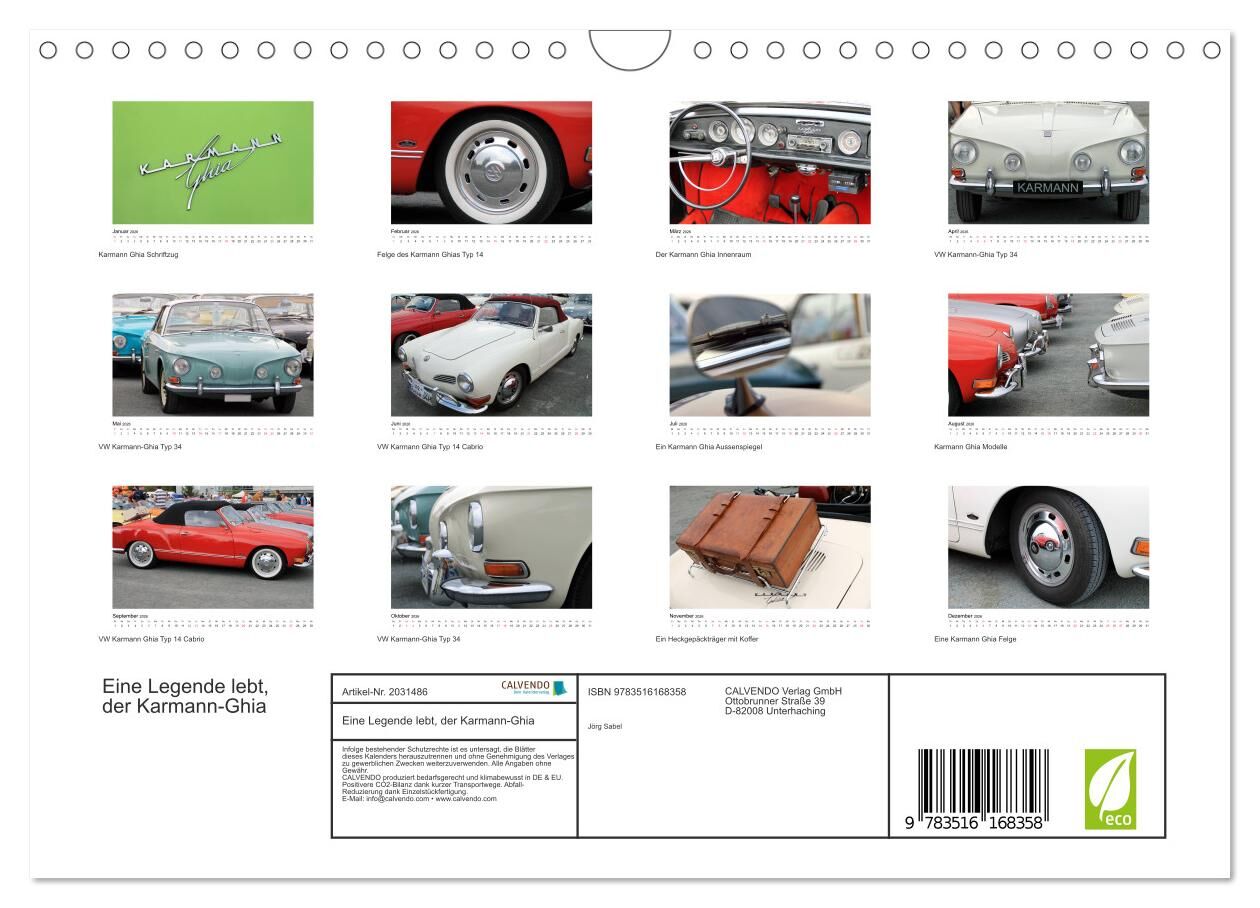 Eine Legende lebt, der Karmann-Ghia (Wandkalender 2026 DIN A4 quer), CALVENDO Monatskalender
