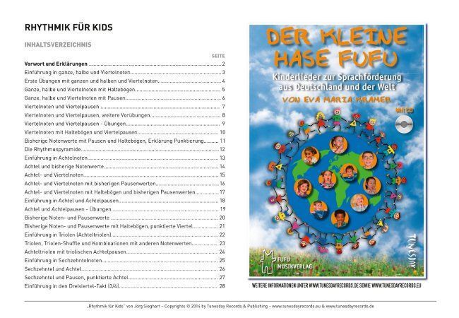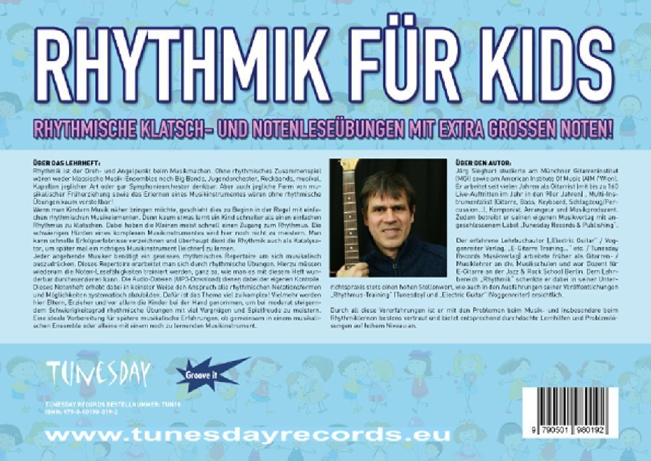 "Rhythmik für Kids" ist eine wunderbare Ergänzung zur Musikalischen Früherziehung oder den Instrumentalunterricht. Die Notenleseübungen sind in extra großen Noten im DIN A4 Querformat. Sie wecken den Spaß am Rhythmus und verbessern die Notationslern-...