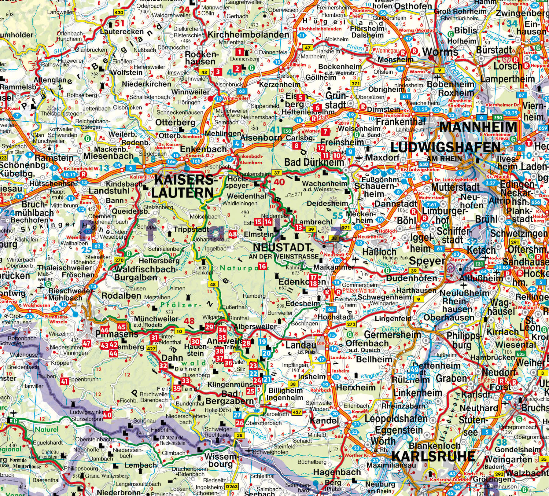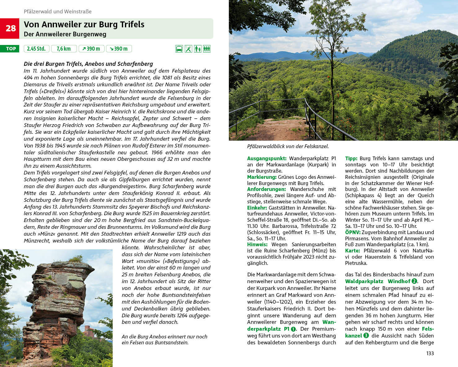 Der Pfälzerwald ist einzigartig in Deutschland: Er ist das größte zusammenhängende Waldgebiet Deutschlands und das zweitgrößte Weinanbaugebiet. Mächtige, bizarr geformte Felsen aus Buntsandstein gewähren spektakuläre Fernsichten. Gleichzeitig mutet die Landsch...