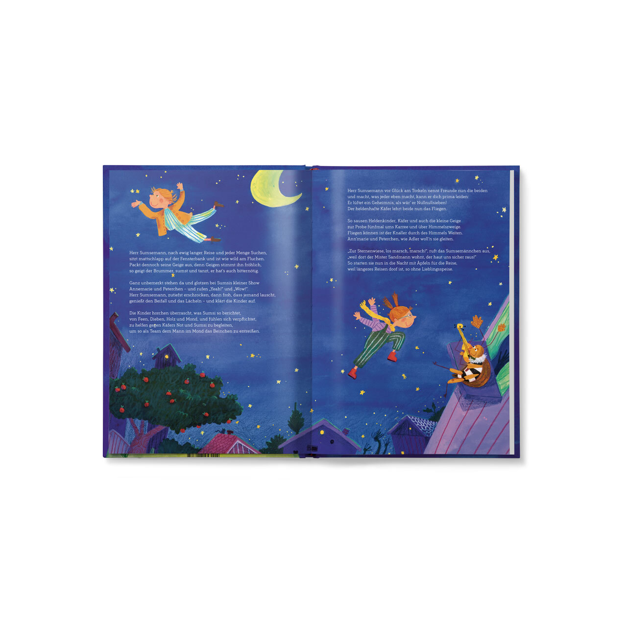 Maikäfer Sumsemann ist tieftraurig: Der fiese Mondmann hat ihm ein Beinchen gestohlen. Da es sich mit fünfen bekanntlich viel schlechter fiedelt als mit sechsen, eilen die Geschwister Annemarie und Peterchen dem verzweifelten Brummerchen zu Hilfe. Gemeinsam be...