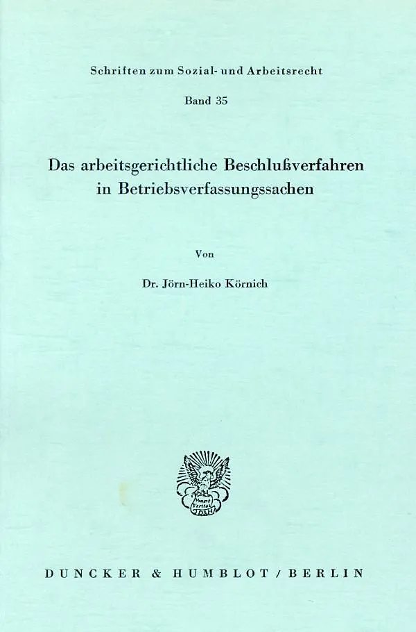 Das arbeitsgerichtliche Beschlußverfahren in Betriebsverfassungssachen.