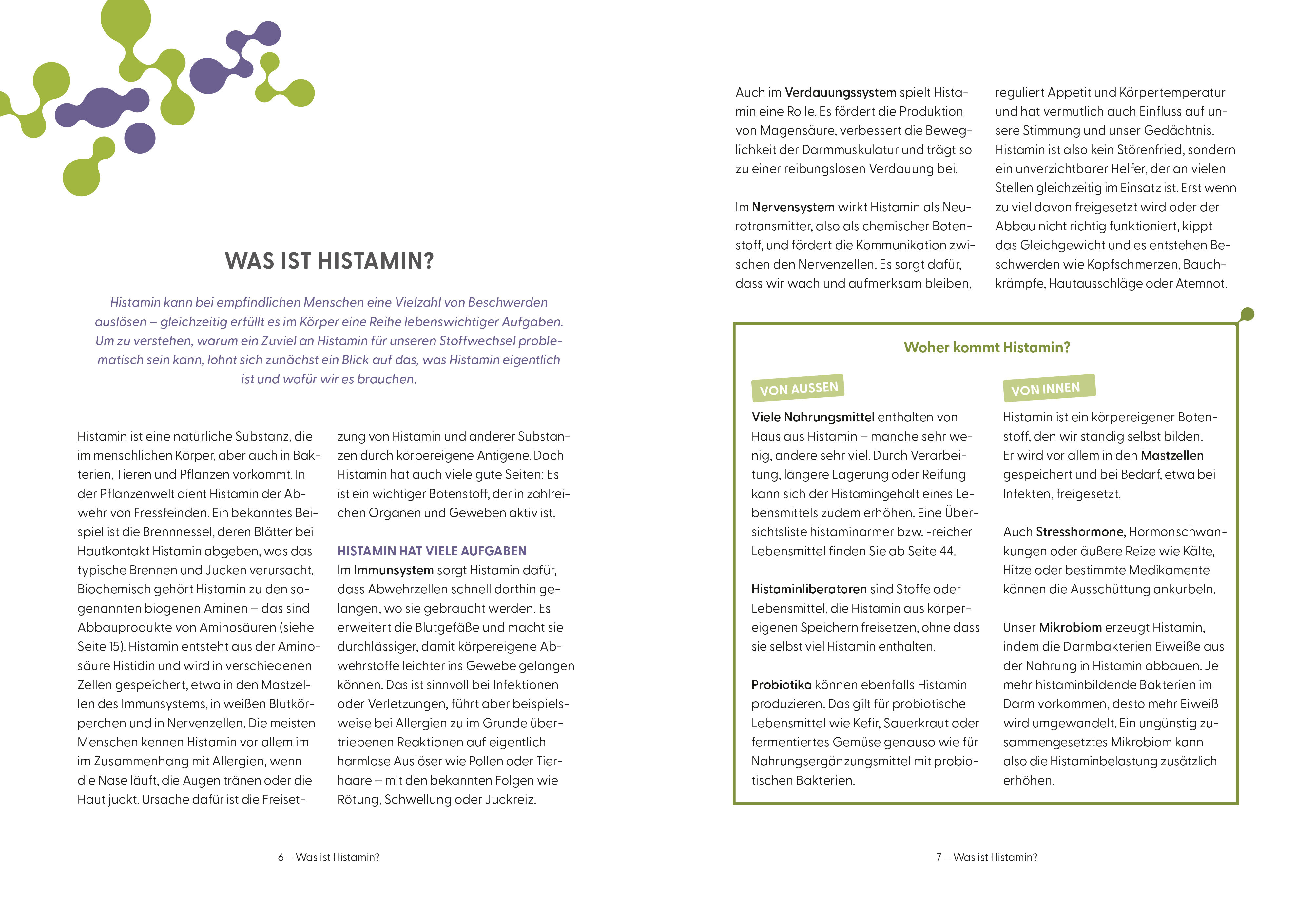 Endlich wieder entspannt genießen Ob Bauchschmerzen, Übelkeit, Kopfweh, Juckreiz oder allergieähnliche Reaktionen: ein Zuviel an Histamin im Körper kann den ganzen Organismus aus dem Gleichgewicht bringen. Doch was steckt dahinter, wer ist betroffen und vor a...