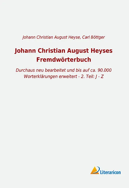 Johann Christian August Heyse (1764 - 1829) war Pädagoge, Grammatiker und Lexikograf. Zu seinen wichtigsten Arbeiten zählt sein in zahlreichen Auflagen erschienene Fremdwörterbuch. Das hier in zwei Bänden vorliegende Werk ist ein Nachdruck der von Carl Böttger...