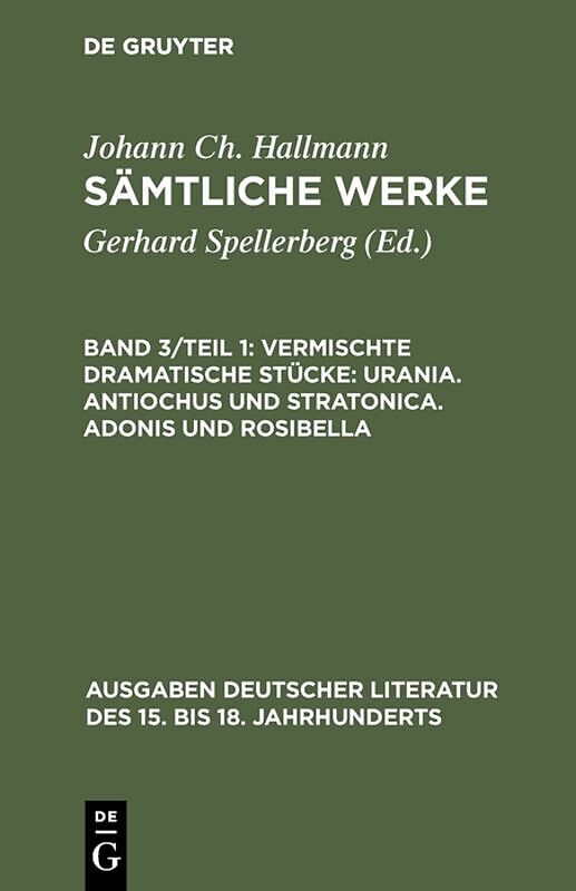 Keine ausführliche Beschreibung für "Vermischte dramatische Stücke: Urania. Antiochus und Stratonica. Adonis und Rosibella" verfügbar. Klappentext Die Reihe Ausgaben Deutscher Literatur des XV. bis XVIII. Jahrhunderts" startete 1967 mit dem Ziel, zur...