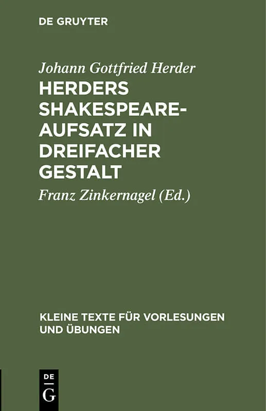 Keine ausführliche Beschreibung für "Herders Shakespeare-Aufsatz in dreifacher Gestalt" verfügbar. Frontmatter -- EINLEITUNG -- Shakespear." Erster und zweiter Entwurf -- Shakespear. Letzte Fassung -- Backmatter Klappentext Frontmatter -- EINLEITUNG ...