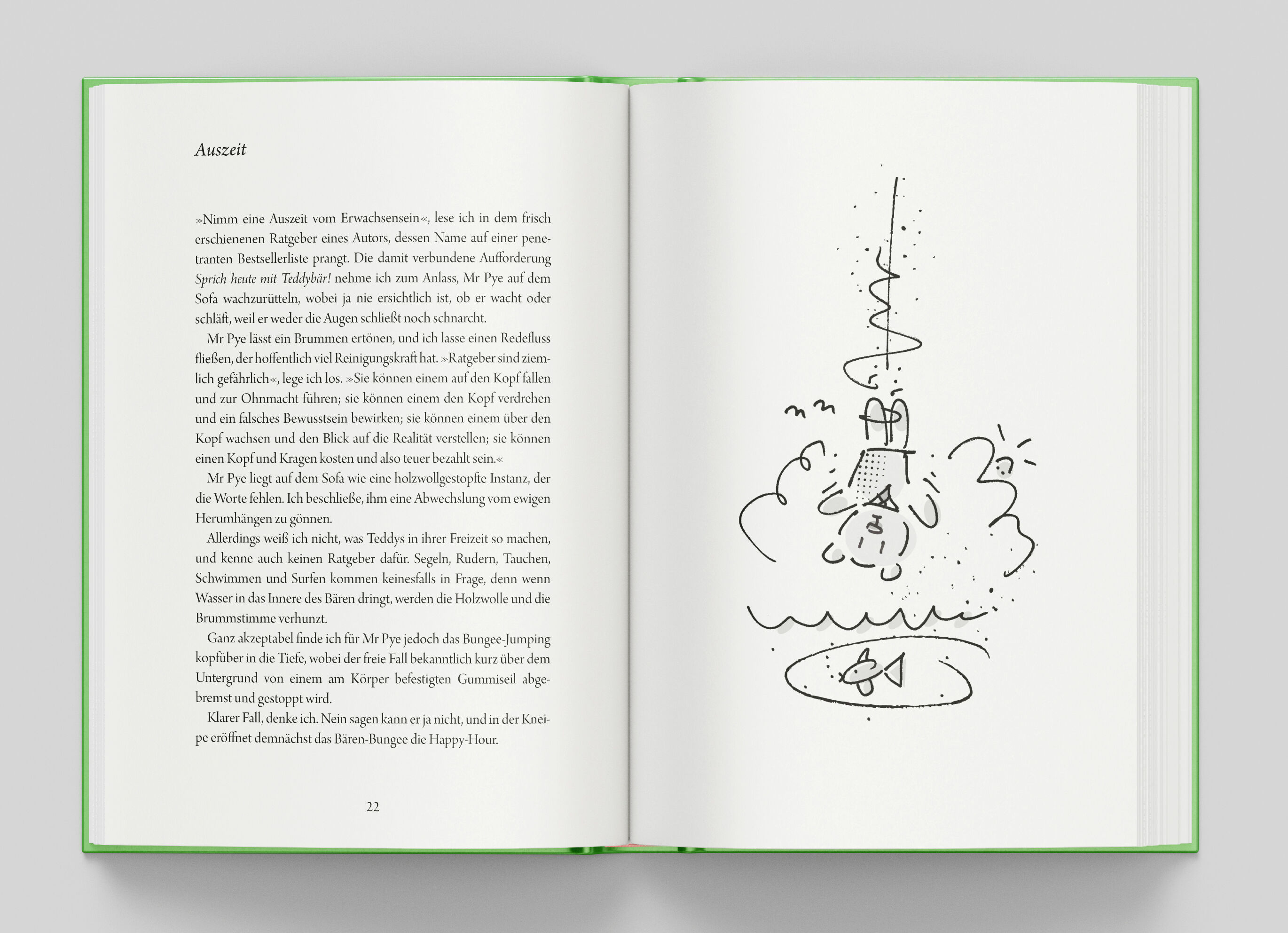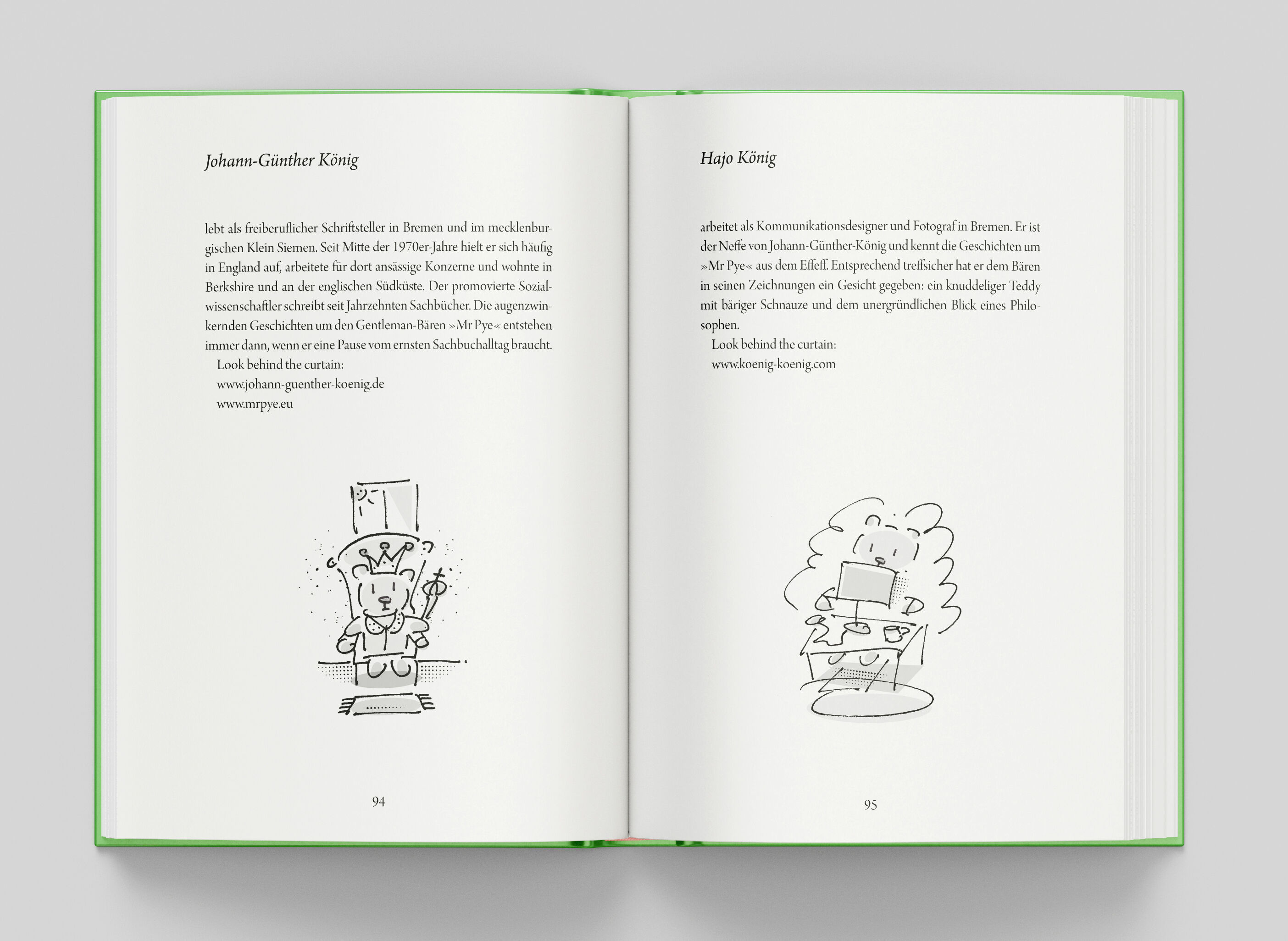 Yes! You're absolutely right: Der Held in diesem Buch ist ein ziemlich haariger Typ mit großer, wenn auch wie zugenähter Schnauze. Ein richtig knuddeliger Teddybär wie aus dem Bilderbuch. But no: Dieser bärige Gentleman namens Mr Pye wohnt nicht etwa im Kinder...