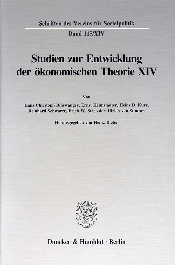 Dieser Band der "Studien zur Entwicklung der ökonomischen Theorie" enthält die auf der 14. Tagung des Dogmenhistorischen Ausschusses der Gesellschaft für Wirtschafts- und Sozialwissenschaften (Verein für Socialpolitik) am 4. und 5. Oktober 1993 vorgetragenen u...