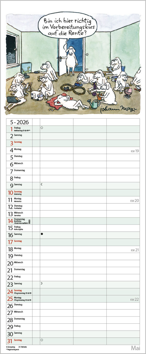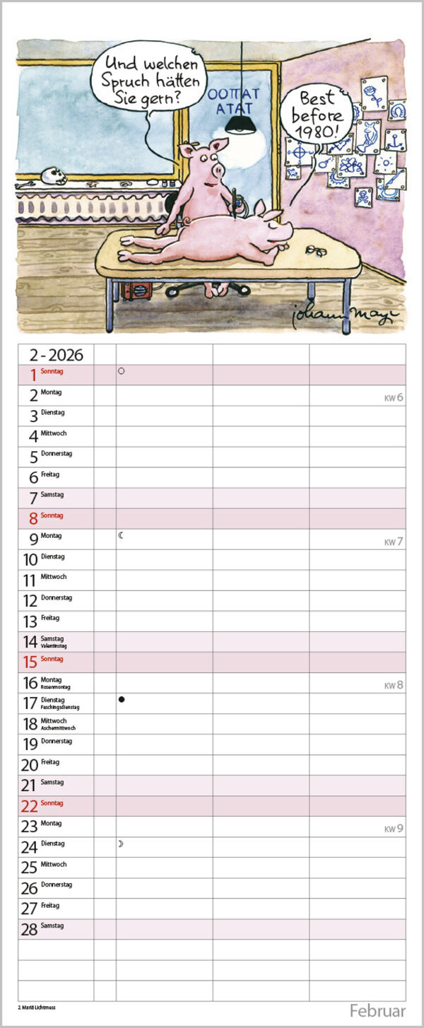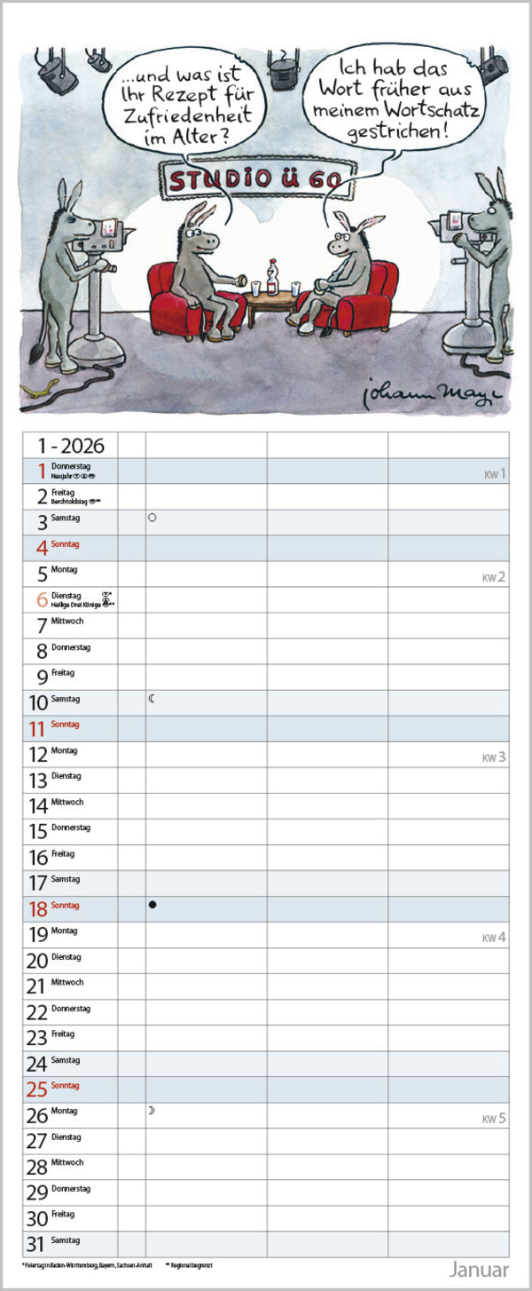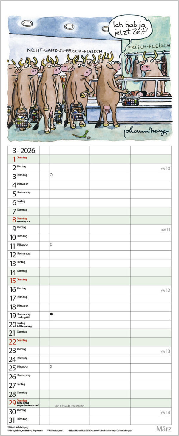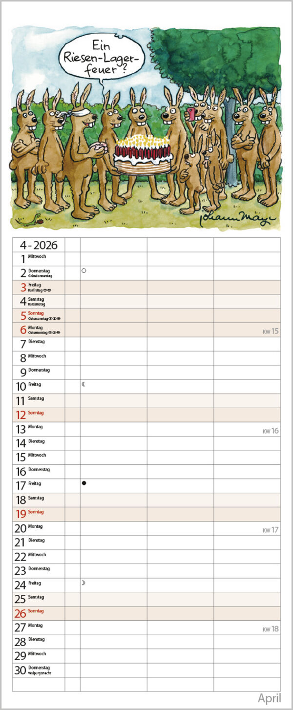 Korsch Familienkalender - Produktmerkmale Übersichtlicher Familienplaner für bis zu 3 Personen; sehr stabile Rückwand; 19 x 46 cm Jeden Monat ein lustiger Cartoon über den Spalten. Ohne störende Bilder in den Spalten Dickes, umweltfreundliches FSC Papier; lei...