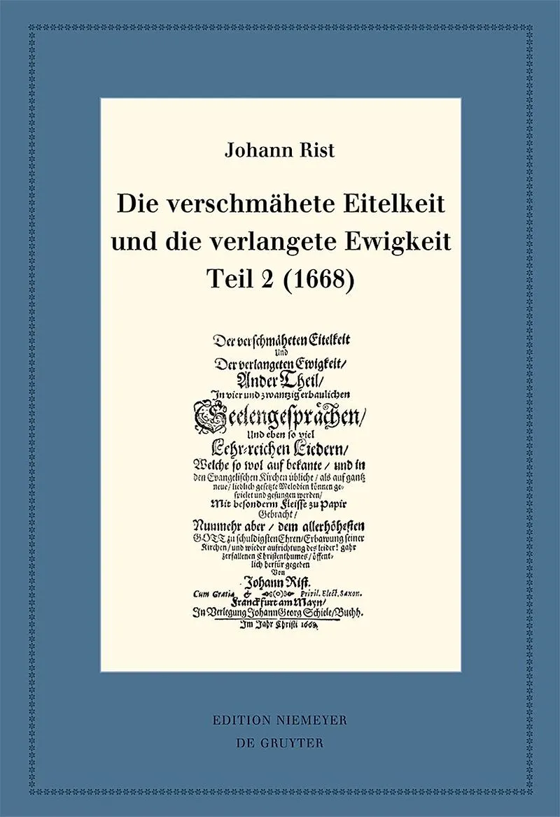The second part of Rist's 1668 posthumously published "Die verschmähte Eitelkeit" is an Early Modern milestone in the literary engagement with the vanitas topos. Like the first part (1658), the second part of this piece also comprises 24 meditative texts in t...