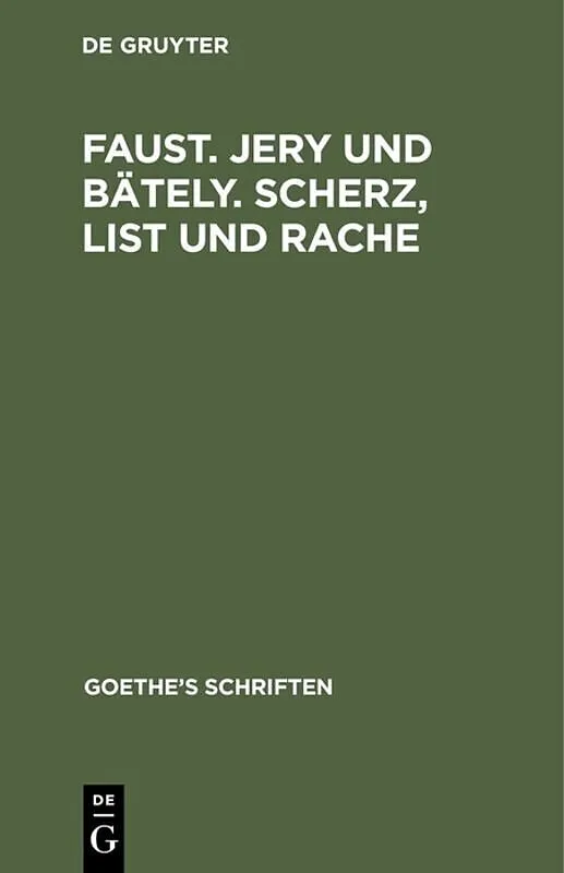 Keine ausführliche Beschreibung für "[Faust. Jern und Bäteln. Scherz, List und Rache]" verfügbar. Inhalt Frontmatter -- Nacht -- Faust -- Faust. Mephistopheles -- Auerbachs Keller in Leipzig -- Hexenküche -- Grethchens Stube -- Wald und Höhle -- Faus...