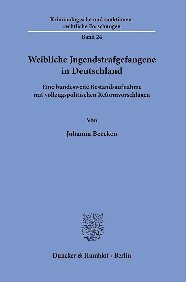 »Female Juvenile Prisoners in Germany. A Nationwide Status Report Including Reform Proposals for the Juvenile Prison System« This thesis provides a comprehensive status report of the female juvenile prison system in Germany. Based on a questionnaire survey of 260 young women, different key aspects like education and job perspectives, family background or drug abuse of female juvenile prisoners were researched. Due to these findings, reform proposals especially for the accommodation of these young women are presented.