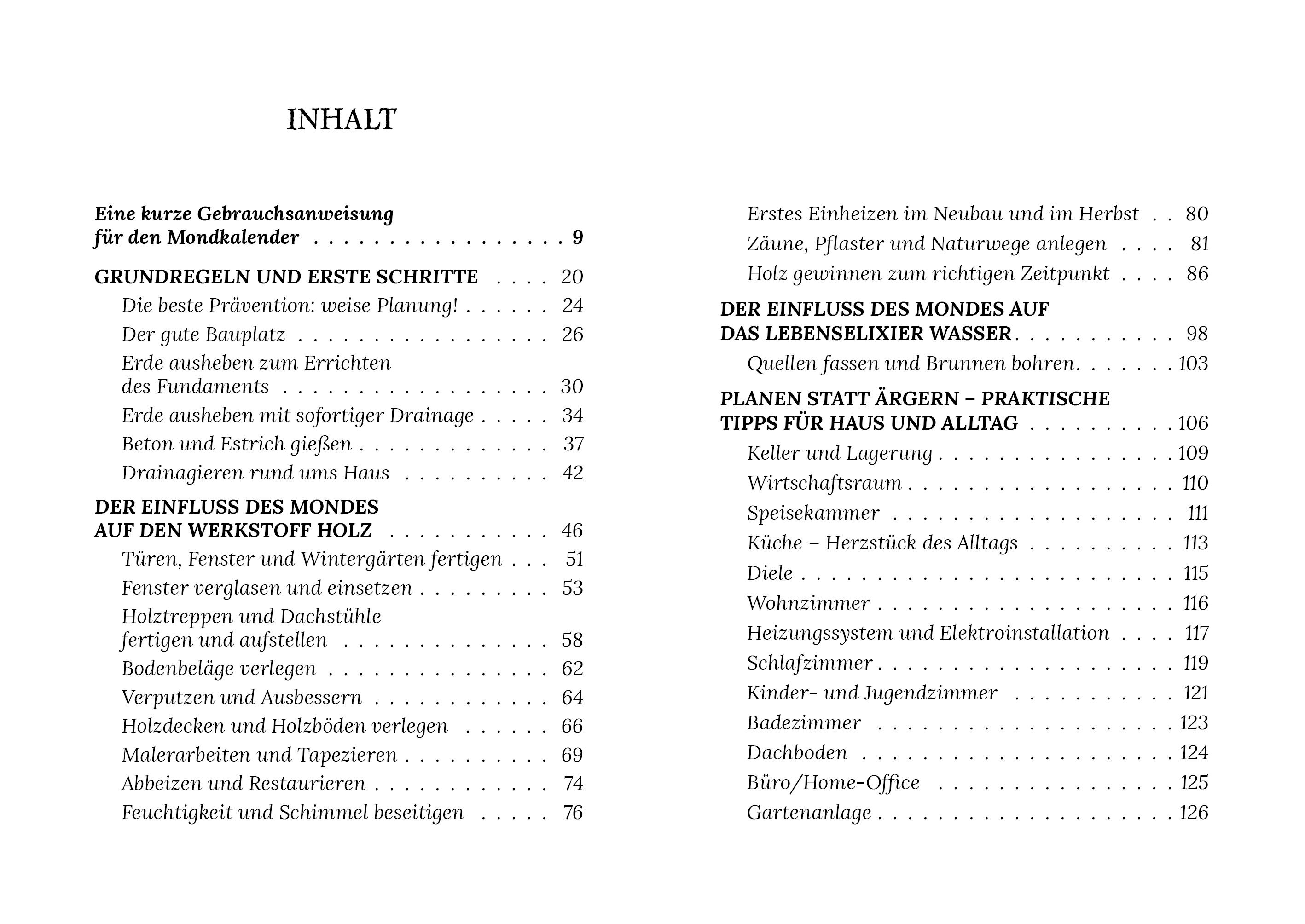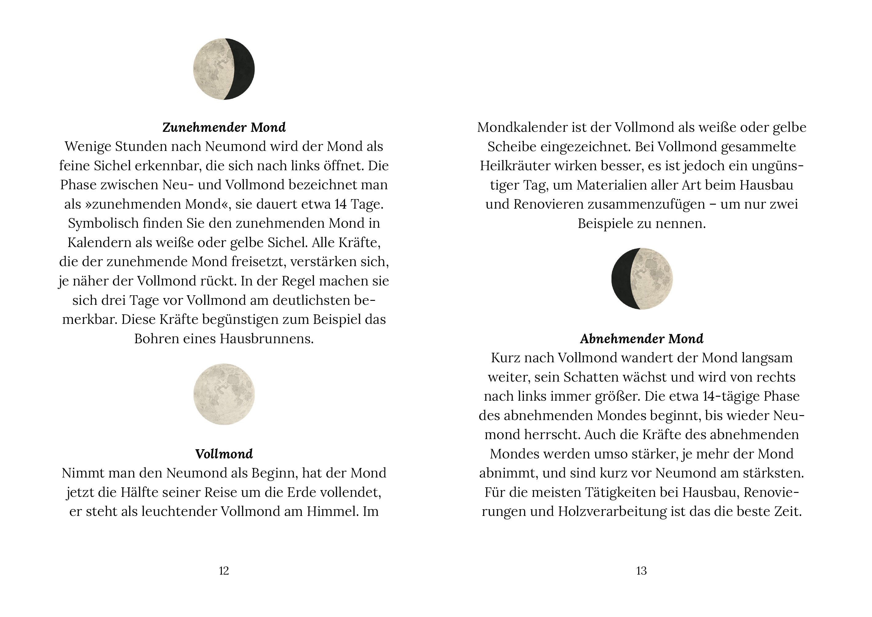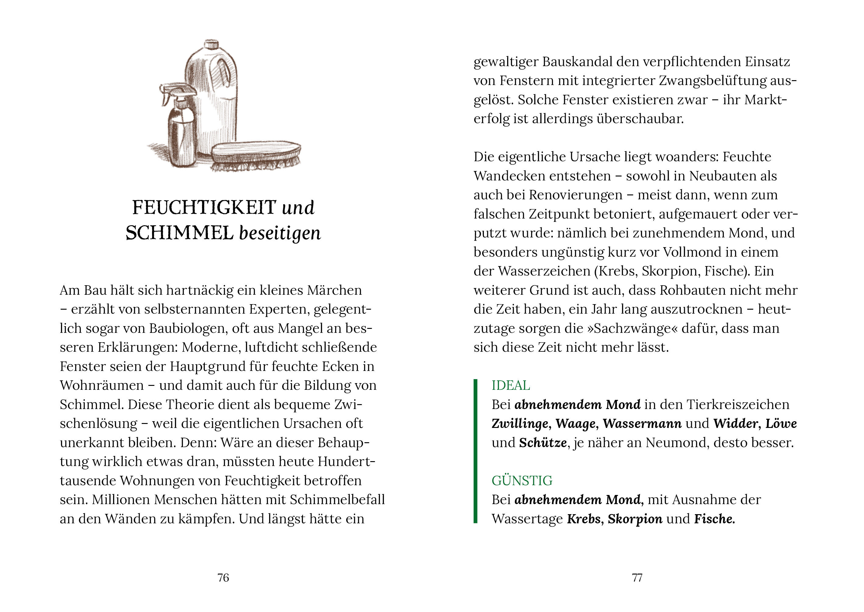 Mit der Kraft des Mondes: Baumfällen, Restaurieren, Boden verlegen Ein Hausbrunnen sollte am besten in den drei Tagen vor Vollmond gebohrt werden, Holzarbeiten hingegen gelingen bei abnehmendem Mond besonders gut: Solche Erfahrungswerte waren früher allgemein...