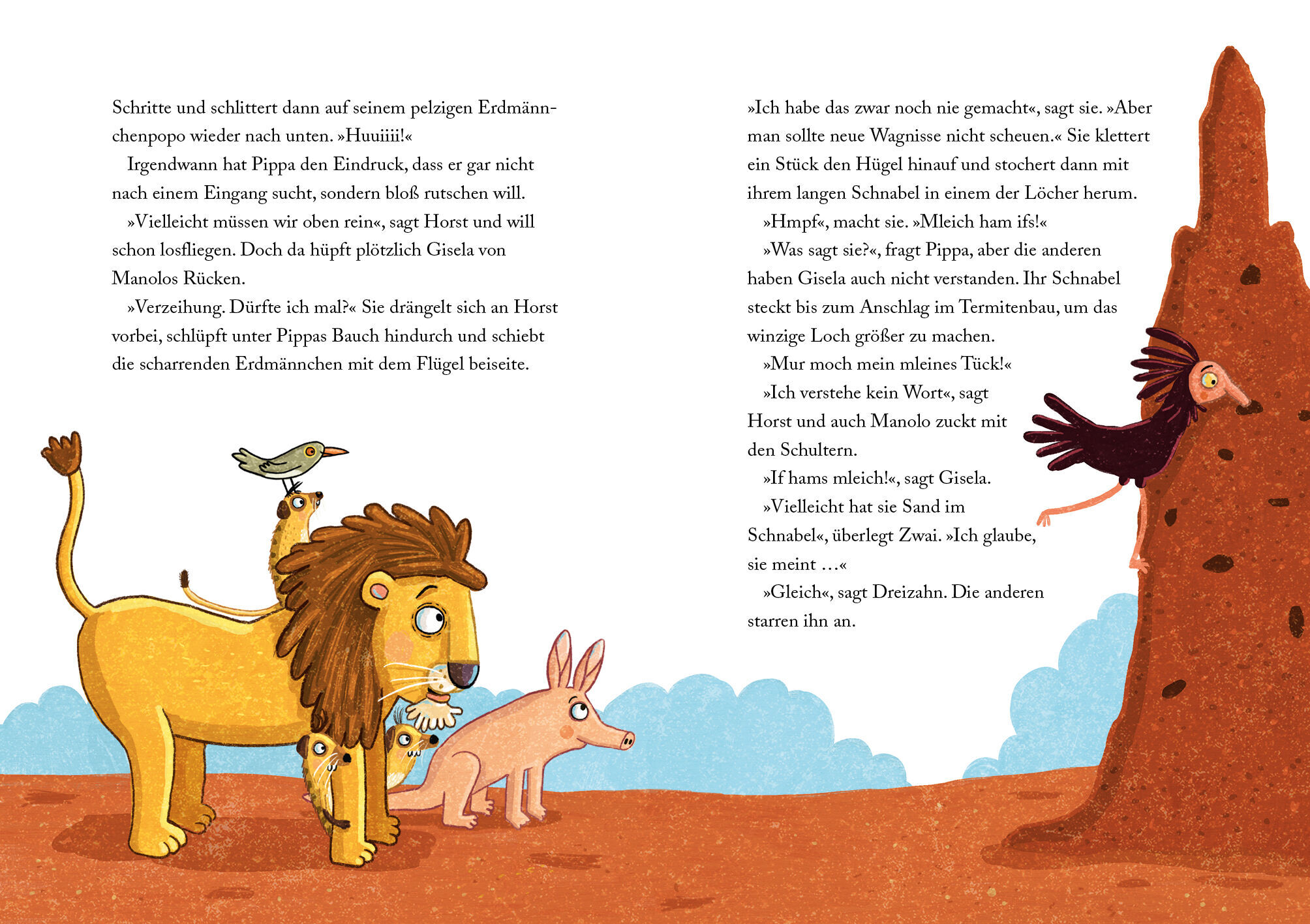 Montags in der afrikanischen Savanne Erdferkel Pippa ist mit ihrem Leben zufrieden. Sie wohnt mit ihren Freunden Madenhacker Horst, Löwe Manolo, den drei Erdmännchen und der Vogeldame Gisela an einem wunderschönen Wasserloch mit glitzernden Wellen, einem sandi...