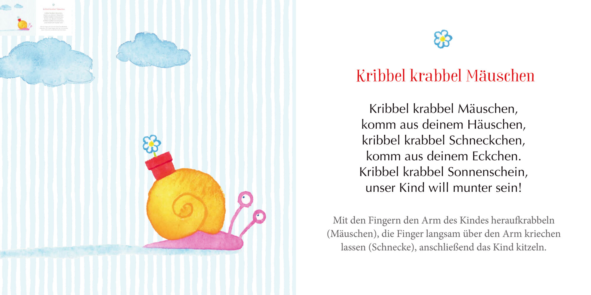 Die schönsten Kinderreime und Fingerspiele für Babys und Kleinkinder! Dieses niedliche kleine Büchlein ist das perfekte Mitbringsel für alle frischgebackenen Eltern zur Geburt , zur Taufe oder einfach mal so: Die liebevolle Sammlung beinhaltet viele Kinderged...