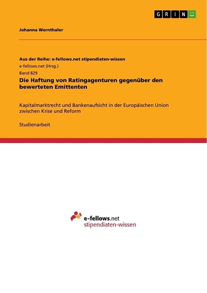 Studienarbeit aus dem Jahr 2013 im Fachbereich Jura - Sonstiges, Note: 16 Punkte, Universität Passau, Sprache: Deutsch, Abstract: Als Reaktion auf die Finanzkrise müssen sich Ratingagenturen in Europa künftig strengeren Regeln unterwerfen. Unter anderem sollen...