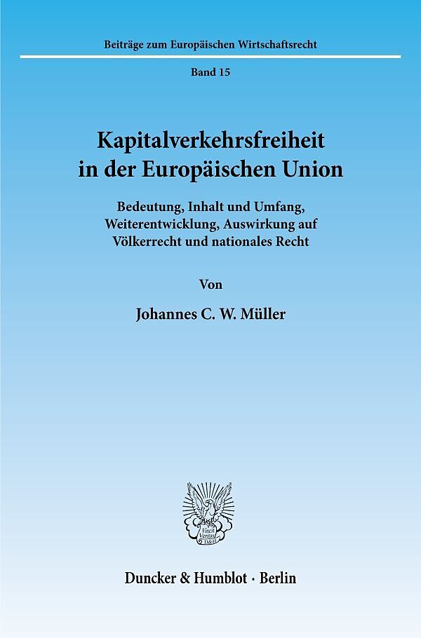 Gegenstand der Dissertation von Johannes C. W. Müller ist die Untersuchung der Kapitalverkehrsfreiheit in der Europäischen Union in ihrer juristischen und ökonomischen Dimension. In der Wirtschaftsordnung der EU nimmt die Kapitalverkehrsfreiheit eine zentrale ...