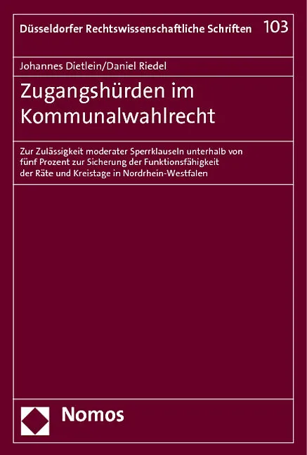 Die Studie untersucht die gegenwärtigen verfassungsrechtlichen Anforderungen an Sperrklauseln sowie sonstige Zugangshürden im Kommunalwahlrecht und lotet die verbleibenden Freiräume für mögliche legislative Maßnahmen aus. ber die Frage der politischen Sinnhaft...