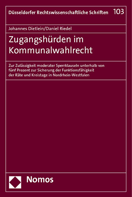 Die Studie untersucht die gegenwärtigen verfassungsrechtlichen Anforderungen an Sperrklauseln sowie sonstige Zugangshürden im Kommunalwahlrecht und lotet die verbleibenden Freiräume für mögliche legislative Maßnahmen aus. ber die Frage der politischen Sinnhaft...