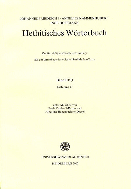 Als Großwörterbuch bietet das Hethitische Wörterbuch² (HW²) zu jedem Wort die wichtigsten Belegstellen mit ausführlichem Kontext in Transliteration und Übersetzung, die die Bedeutungsskala des Wortes (oder die Schwierigkeiten bei der Bedeutungsfestlegung) doku...