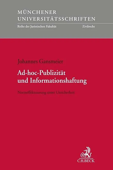 Zum Werk In den vergangenen Jahren stand kaum ein anderes Thema derart im Fokus des Kapitalmarktrechtsdiskurses wie die Ad-hoc-Publizitätspflicht nach Art. 17 MAR und die darauf bezogene Haftungsanordnung der §§ 97, 98 WpHG. Das ausgeprägte Interesse am Regelu...