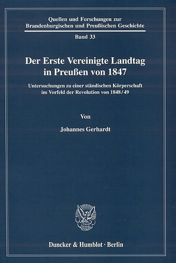 Der Erste Vereinigte Landtag, der vom 11. April bis zum 26. Juni 1847 im Berliner Stadtschloss tagte, fristete in der Forschung bisher eher ein Schattendasein - zu Unrecht, stellt er doch einen Höhepunkt der Entwicklung des vormärzlichen preußischen Parlamenta...