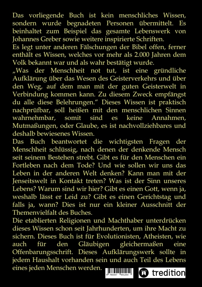 Rezession einer Leserin: Ein Buch für alle wahrheitssuchenden Menschen, denn was von den bestehenden Kirchen dem unwissenden Volk erzählt wird, entspricht nicht immer der Wahrheit. Die Wahrheit über die wichtigsten Lebensfragen der Menschen. Dieses Buch gibt A...