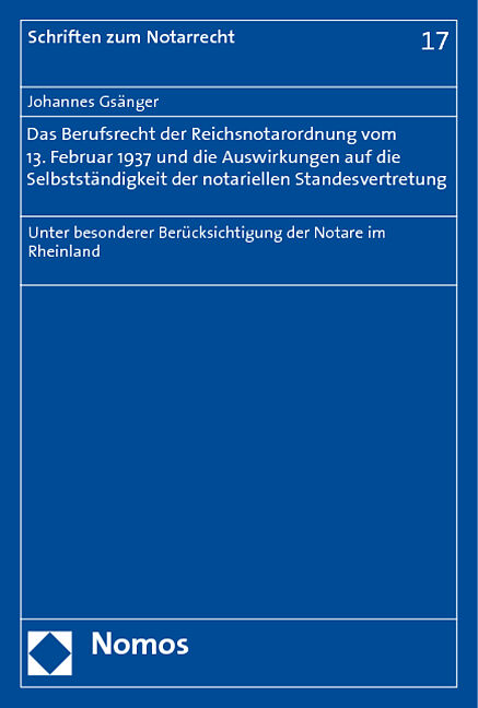 Die Entwicklung des deutschen Notariats nach dem Ende des Heiligen Römischen Reiches Deutscher Nation war gekennzeichnet durch die Entstehung mannigfaltiger Kodifikationen zur Regelung des Berufsrechts in den einzelnen Ländern. Auf der Ebene der notariellen St...