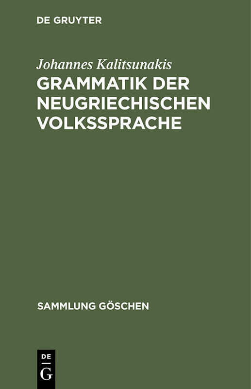 Keine ausführliche Beschreibung für "Grammatik der neugriechischen Volkssprache" verfügbar. Inhalt Frontmatter -- Inhaltsverzeichnis -- Verzeichnis von Wörtern -- Literaturverzeichnis -- Einleitung -- Lautlehre -- Flexionslehre -- Übersicht der Suffi...